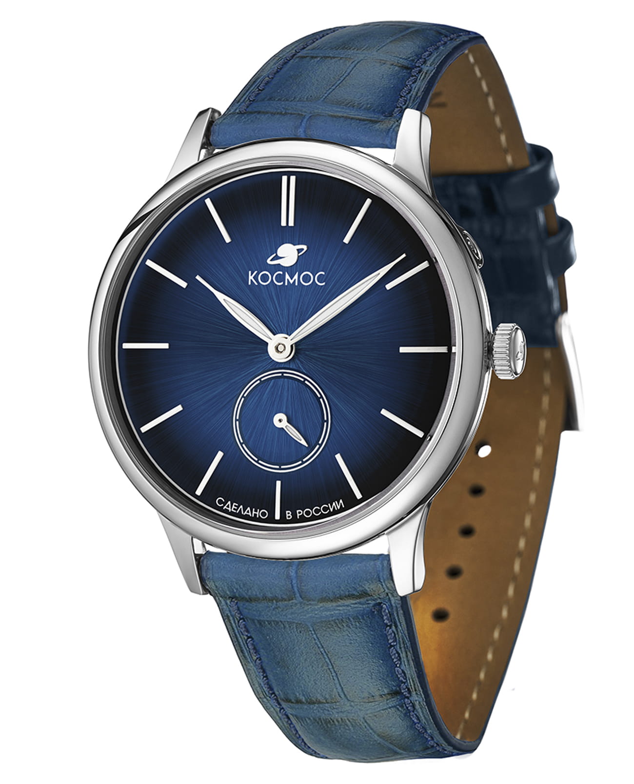 Мужские наручные часы Космос Сириус K 021.16.36 — это сочетание традиций часового искусства 60-70-х годов и футуристического дизайна, вдохновленного космическими исследованиями. Они не только служат напоминанием о прошлом, но и побуждают задуматься о будущем, позволяя наслаждаться качеством и смыслом, вложенными в каждую деталь. Полированный корпус часов выполнен в виде силуэта летающей тарелки благодаря выпуклым формам стекла и нижней части корпуса. Стальные ушки, которые напоминают опоры летающей тарелки, завершает общий образ. На задней крышке часов выгравирован фантазийный сюжет – космическая станция будущего. Синий циферблат в ретро-стиле с выгнутыми краями требует сложной технологии производства, что делает их аналогами часов прошлых эпох. Кончик секундной стрелки изогнут так, чтобы гармонировать с формой циферблата. Выпуклый градиентный циферблат украшен шлифовкой, напоминающей солнечные лучи, и ручными индексами, надежно закрепленными на двух штифтах. Специальное люминесцентное покрытиеЛюминесцентное покрытиеПозволяет считывать показания времени в темноте. Производители наносят на стрелки, часовые индексы, безель или поверхность циферблата светонакопительный состав, дающий холодное свечение. нанесено на часовую, минутную и секундную стрелки, а также на пунктирные метки и окантовку циферблата, создавая эффект светящегося изображения в темноте. Форма минерального стеклаМинеральное стеклоМинеральное стекло представляет собой искусственно выращенный минерал кварца. Такое стекло отличается особой устойчивостью к повреждениям и царапинам. Уступает по некоторым качествам сапфировому стеклу. также тщательно продумана — оно изогнуто как снаружи, так и изнутри. Эта конструкция предотвращает искажение изображения на циферблате, в отличие от традиционных стекол с прямой внутренней частью, которые могут создавать оптические искажения. Часы комплектуются кожаным браслетом синего цвета с прошивкой. Корпус изготовлен из гипоаллергенной стали, что обеспечивает комфорт при ношении. Заводная головка, застежка и ремешок украшены фирменным логотипом, подчеркивающим индивидуальность данной модели.