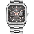 Мужские наручные часы Космос Марсоход II K 219.10.34 — это уникальная лимитированная серия, посвященная аппарату, способному передвигаться по поверхности Красной планеты. Марсоход ассоциируется с брутальностью, мастерством и технической сложностью. Наша страна дважды запускала подобные аппараты еще в 70-х годах прошлого века. Дизайн часов серии Марсоход вдохновлен лучшими работами советских мастеров, сочетая современные технологии часового искусства с обаянием стиля ретро. Корпус в форме квадрата с закругленными углами выполнен из нержавеющей стали украшенной зеркальной полировкой и сатинированием. Удобная заводная головка имеет форму гайки, что добавляет модели индустриальный шарм. Задняя крышка прозрачная, закрепленная на четырех винтах, и позволяет увидеть работу механизма TMI с подвижным ротором, на котором гравируется надпись «Сделано в России». Также здесь представлена гравировка с изображением космонавта, придающая часам особую значимость. Водостойкость достигает 10 атм (WR100), что позволяет использовать часы при плавании и других водных видах спорта. На задней крышке указан индивидуальный номер модели в формате от 01/50 до 50/50. Объемный циферблат состоит из двух уровней. В центре движутся три стрелки, часовая и минутная из которых имеют люминесцентное покрытиеЛюминесцентное покрытиеПозволяет считывать показания времени в темноте. Производители наносят на стрелки, часовые индексы, безель или поверхность циферблата светонакопительный состав, дающий холодное свечение., позволяющее определять время даже в темноте. Также, здесь расположили три дополнительных индикатора: день недели, месяц и время в формате 24-х часов. Для обозначения дня недели и месяца используется кириллица. Окошко даты между 4 и 5 часами выделено накладной рамкой. Циферблат защищен прочным сапфировым стеклом с антибликовым покрытиемСапфировое стеклоПрочный и надёжный материал из кристалла сапфира синтетического происхождения, характеризующийся особой твёрдостью и устойчивостью к царапинам и повреждениям., обеспечивающим отличную читаемость показаний в любых условиях. Второй уровень декорирован гильоше в виде солнечных лучей, на нем закреплены накладные индексы. Браслет изготовлен из литых стальных звеньев нержавеющей стали и оснащен удобной застёжкой «бабочка» с кнопкамиЗастёжка "бабочка"Такой вид застёжки дополняется предохранителями, помогающими избежать случайного раскрытия браслета. Обладают изящным исполнением. , которая сводит к минимуму вероятность потери. Заводная головка, застежка и браслет украшены фирменным логотипом бренда. Коллекция Марсоход — идеальный выбор для ценителей истории космических достижений и современных технологий.