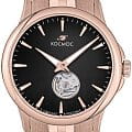 Мужские наручные часы Космос Телескоп K 304.40.31 —  это уникальная лимитированная серия под названием Телескоп, посвящена аппарату приоткрывающего взгляду бескрайние дали космического пространства. Апертура открытого баланса модели по форме напоминает круглую линзу телескопа. Сквозь это окошко, расположенное на черном циферблате, также можно увидеть много интересного: ту самую систему «баланс-спираль» автоматического механизма, которая отвечает за точность хода. Корпус часов выполнен из нержавеющей стали с PVDPVDУльтратонкое покрытие наносится в технике вакуумного напыления, сочетает в себе нитрид титана особой прочности со слоем золота или оксида хрома. Несёт в себе декоративную или защитную функцию. покрытием, классической круглой формы и достаточно тонкий для механических моделей. Это стало возможным благодаря использованию механизма Miyota, калибр 9029, с высотой всего 3.9 мм. Циферблат декорирован вертикальной текстурой в ретро-стиле, по которой движутся крупные часовая и минутная стрелки, имеющие люминесцентное покрытиеЛюминесцентное покрытиеПозволяет считывать показания времени в темноте. Производители наносят на стрелки, часовые индексы, безель или поверхность циферблата светонакопительный состав, дающий холодное свечение., позволяющее определять время даже в темноте. Циферблат защищен прочным сапфировым стеклом с антибликовым покрытиемСапфировое стеклоПрочный и надёжный материал из кристалла сапфира синтетического происхождения, характеризующийся особой твёрдостью и устойчивостью к царапинам и повреждениям., обеспечивающим отличную читаемость показаний в любых условиях. Прозрачная задняя крышка, закрепленная на четырех винтах, демонстрирует механизм и содержит выгравированный индивидуальный номер экземпляра  хх/50, отражающий лимитированный тираж всего в 50 штук. Браслет изготовлен из нержавеющей стали с PVDPVDУльтратонкое покрытие наносится в технике вакуумного напыления, сочетает в себе нитрид титана особой прочности со слоем золота или оксида хрома. Несёт в себе декоративную или защитную функцию. покрытием и оснащен удобной застёжкой «бабочка» с кнопкамиЗастёжка "бабочка"Такой вид застёжки дополняется предохранителями, помогающими избежать случайного раскрытия браслета. Обладают изящным исполнением. , которая сводит к минимуму вероятность потери. Модель Телескоп сочетает классический дизайн и универсальность, прекрасно подходя как к деловому костюму, так и к более повседневным образам.