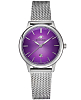 Женские наручные часы Космос Созвездие K 601.10.37 — это сочетание традиций часового искусства 60-70-х годов и футуристического дизайна, вдохновленного космическими исследованиями. Они не только служат напоминанием о прошлом, но и побуждают задуматься о будущем, позволяя наслаждаться качеством и смыслом, вложенными в каждую деталь. Полированный корпус часов выполнен в виде силуэта летающей тарелки благодаря выпуклым формам стекла и нижней части корпуса. Стальные ушки, которые напоминают опоры летающей тарелки, завершает общий образ. На задней крышке часов выгравирован фантазийный сюжет – космическая станция будущего. Название коллекции Созвездие – идеально отражает разнообразие моделей с яркими, но тщательно подобранными цветами. Фиолетовый циферблат выполнен в ретро стиле, с выгнутыми краями, что требует применения сложной производственной технологии. Такой дизайн был характерен для часов прошлых лет. Кончик секундной стрелки также изогнут, следуя форме циферблата. Выпуклый градиентный циферблат украшен шлифовкой в стиле солнечных лучей и ручными индексами, которые фиксируются на двух штифтах. Окошко даты обрамлено стальной рамкой, что добавляет часам утонченности и элегантности. Часовая и минутная стрелки, а также круг по краю циферблата, напоминающий ореол Земли, с  люминесцентным покрытиемЛюминесцентное покрытиеПозволяет считывать показания времени в темноте. Производители наносят на стрелки, часовые индексы, безель или поверхность циферблата светонакопительный состав, дающий холодное свечение., которое светится в темноте, создавая завораживающий эффект. Форма минерального стеклаМинеральное стеклоМинеральное стекло представляет собой искусственно выращенный минерал кварца. Такое стекло отличается особой устойчивостью к повреждениям и царапинам. Уступает по некоторым качествам сапфировому стеклу. тщательно продумана: оно выгнуто как снаружи, так и изнутри. Такая конструкция исключает искажения изображения на циферблате, в отличие от обычного стекла. Часы оснащены гибким и прочным браслетом из миланского плетения. Заводная головка, застежка и ремешок украшены фирменным логотипом.