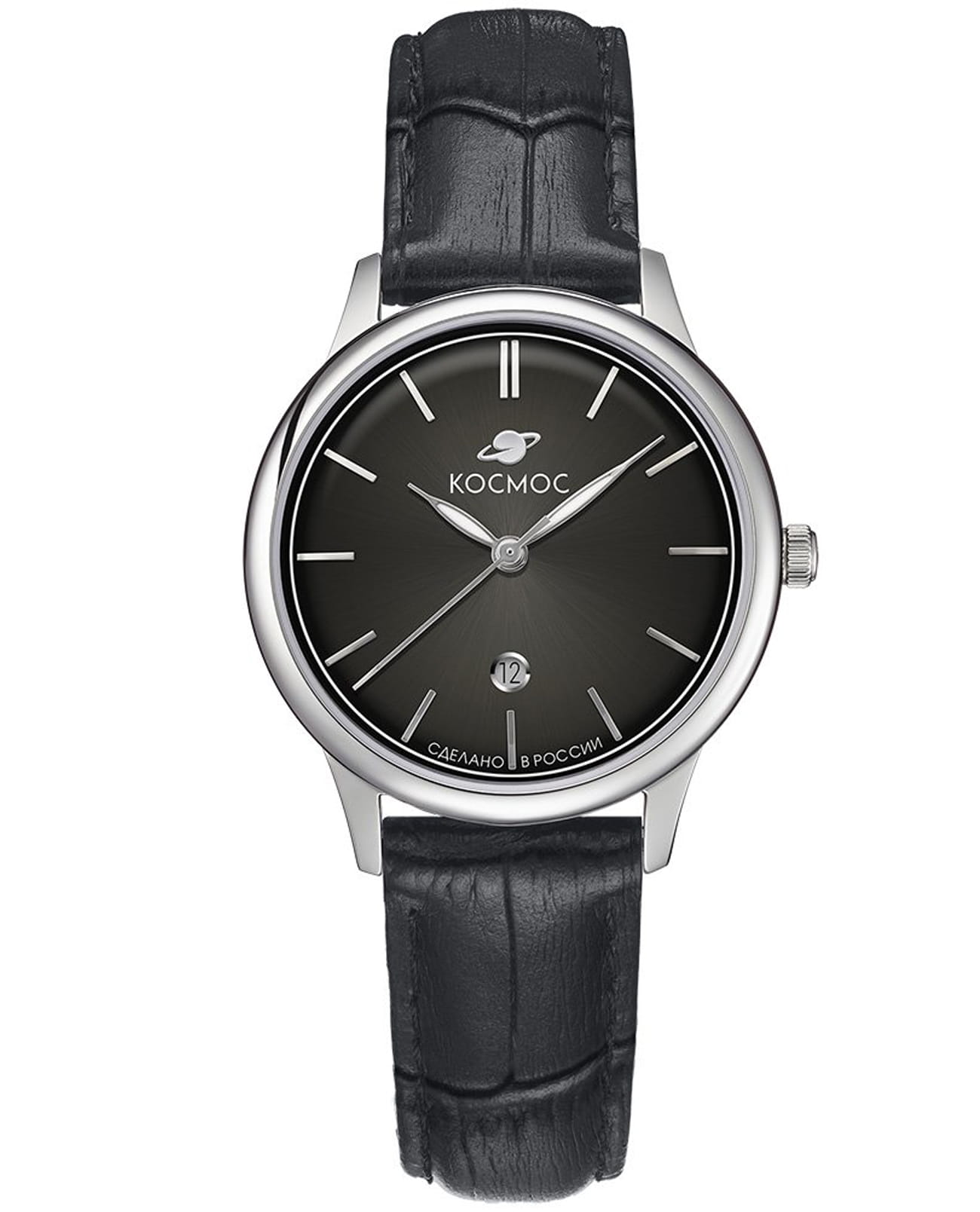 Женские наручные часы Космос Созвездие K 601.11.31 — это сочетание традиций часового искусства 60-70-х годов и футуристического дизайна, вдохновленного космическими исследованиями. Они не только служат напоминанием о прошлом, но и побуждают задуматься о будущем, позволяя наслаждаться качеством и смыслом, вложенными в каждую деталь. Полированный корпус часов выполнен в виде силуэта летающей тарелки благодаря выпуклым формам стекла и нижней части корпуса. Стальные ушки, которые напоминают опоры летающей тарелки, завершает общий образ. На задней крышке часов выгравирован фантазийный сюжет – космическая станция будущего. Название коллекции Созвездие – идеально отражает разнообразие моделей с яркими, но тщательно подобранными цветами. Черный циферблат выполнен в ретро стиле, с выгнутыми краями, что требует применения сложной производственной технологии. Такой дизайн был характерен для часов прошлых лет. Кончик секундной стрелки также изогнут, следуя форме циферблата. Выпуклый градиентный циферблат украшен шлифовкой в стиле солнечных лучей и ручными индексами, которые фиксируются на двух штифтах. Окошко даты обрамлено стальной рамкой, что добавляет часам утонченности и элегантности. Часовая и минутная стрелки, а также круг по краю циферблата, напоминающий ореол Земли, с люминесцентным покрытиемЛюминесцентное покрытиеПозволяет считывать показания времени в темноте. Производители наносят на стрелки, часовые индексы, безель или поверхность циферблата светонакопительный состав, дающий холодное свечение., которое светится в темноте, создавая завораживающий эффект. Форма минерального стеклаМинеральное стеклоМинеральное стекло представляет собой искусственно выращенный минерал кварца. Такое стекло отличается особой устойчивостью к повреждениям и царапинам. Уступает по некоторым качествам сапфировому стеклу. тщательно продумана: оно выгнуто как снаружи, так и изнутри. Такая конструкция исключает искажения изображения на циферблате, в отличие от обычного стекла. Ремешок модели сделан из натуральной кожи черного цвета. Заводная головка, застежка и ремешок украшены фирменным логотипом.
