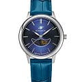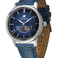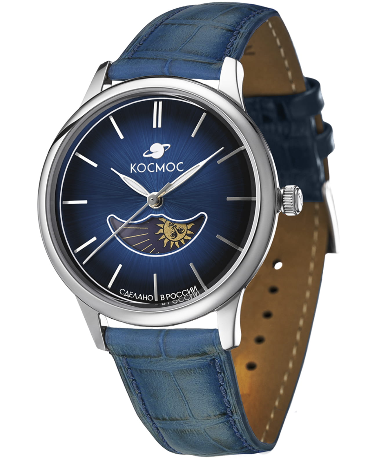 Женские наручные часы Космос Солнце и Луна K 617.16.36 — это сочетание традиций часового искусства 60-70-х годов и футуристического дизайна, вдохновленного космическими исследованиями. Они не только служат напоминанием о прошлом, но и побуждают задуматься о будущем, позволяя наслаждаться качеством и смыслом, вложенными в каждую деталь. Полированный корпус часов выполнен в виде силуэта летающей тарелки благодаря выпуклым формам стекла и нижней части корпуса. Стальные ушки, которые напоминают опоры летающей тарелки, завершает общий образ. На задней крышке часов выгравирован фантазийный сюжет – космическая станция будущего. Элегантные женские часы из серии Солнце и Луна выделяются функцией день/ночь. Синий циферблат выполнен в ретро-стиле с выгнутыми краями, что требует применения сложных технологий в производстве. Циферблаты такой формы были характерны для часов прошлых эпох. Кончик секундной стрелки изогнут в соответствии с формой циферблата. На градиентном выпуклом циферблате выполнена шлифовка в стиле солнечных лучей, а также размещены индексы, изготовленные вручную и закрепленные на двух штифтах. Часовая и минутная стрелки, а также круг по краю циферблата, напоминающий ореол Земли, с люминесцентным покрытиемЛюминесцентное покрытиеПозволяет считывать показания времени в темноте. Производители наносят на стрелки, часовые индексы, безель или поверхность циферблата светонакопительный состав, дающий холодное свечение., которое светится в темноте, создавая завораживающий эффект. Форма минерального стеклаМинеральное стеклоМинеральное стекло представляет собой искусственно выращенный минерал кварца. Такое стекло отличается особой устойчивостью к повреждениям и царапинам. Уступает по некоторым качествам сапфировому стеклу. тщательно продумана: оно выгнуто как снаружи, так и изнутри. Такое решение позволяет избежать искажения изображения на циферблате, в отличие от стекла с прямой внутренней частью, которое создает эффект линзы. Ремешок модели сделан из натуральной кожи синего цвета. Заводная головка, застежка и ремешок украшены фирменным логотипом.