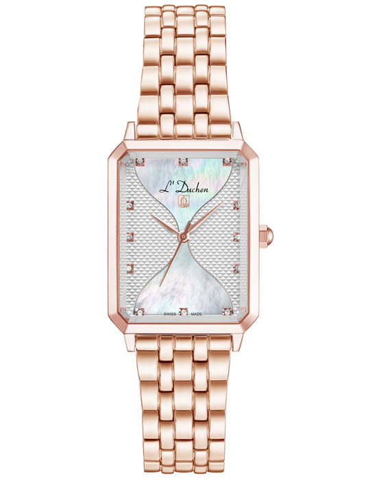 Женские швейцарские L'Duchen Pyramide D 591.40.33, кварцевый механизм с высокой точностью. Сапфировое стеклоСапфировое стеклоПрочный и надёжный материал из кристалла сапфира синтетического происхождения, характеризующийся особой твёрдостью и устойчивостью к царапинам и повреждениям. устойчивое к появлению царапин, обладающее высокой прозрачностью. Корпус часов выполнен из нержавеющей стали с PVD-покрытиемPVDУльтратонкое покрытие наносится в технике вакуумного напыления, сочетает в себе нитрид титана особой прочности со слоем золота или оксида хрома. Несёт в себе декоративную или защитную функцию.. Циферблат украшен фианитами. Класс водозащиты: 50 метров, позволит защитить корпус от случайных брызг или капель дождя. Стальной браслет с PVD-покрытиемPVDУльтратонкое покрытие наносится в технике вакуумного напыления, сочетает в себе нитрид титана особой прочности со слоем золота или оксида хрома. Несёт в себе декоративную или защитную функцию. на застёжке «бабочка» с кнопкамиЗастёжка "бабочка"Такой вид застёжки дополняется предохранителями, помогающими избежать случайного раскрытия браслета. Обладают изящным исполнением. .