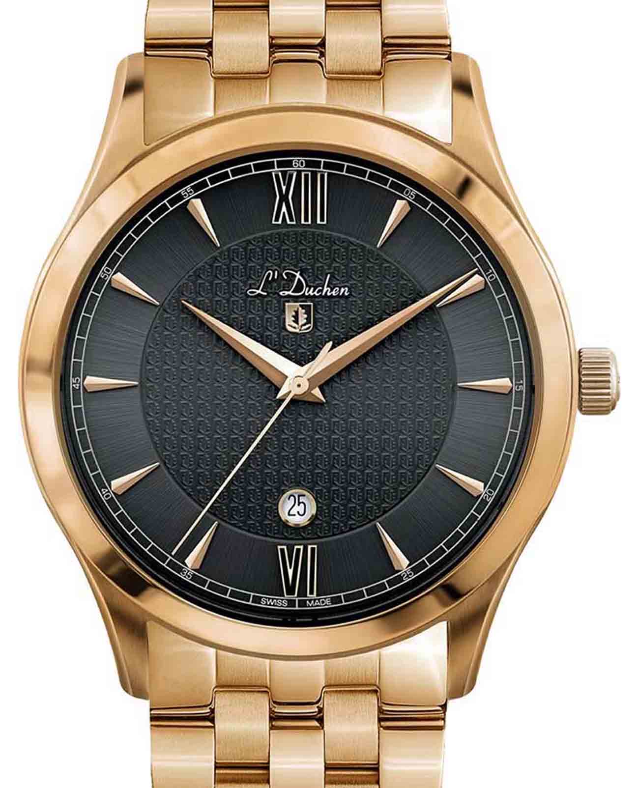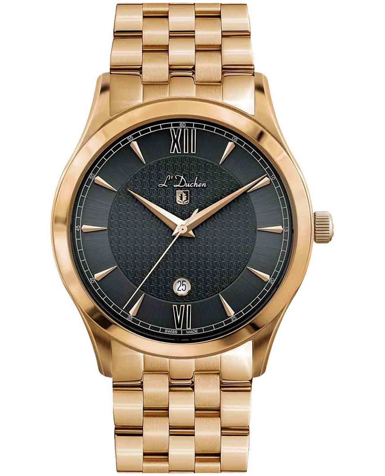 Мужские швейцарские часы L'Duchen Carcassonne D 761.40.11, кварцевый механизм с высокой точностью. Сапфировое стеклоСапфировое стеклоПрочный и надёжный материал из кристалла сапфира синтетического происхождения, характеризующийся особой твёрдостью и устойчивостью к царапинам и повреждениям. устойчивое к появлению царапин, обладающее высокой прозрачностью. Корпус часов выполнен из нержавеющей стали с PVD-покрытиемPVDУльтратонкое покрытие наносится в технике вакуумного напыления, сочетает в себе нитрид титана особой прочности со слоем золота или оксида хрома. Несёт в себе декоративную или защитную функцию.. Класс водозащиты: 50 метров, позволит защитить корпус от случайных брызг или капель дождя. Стальной браслет с PVD-покрытиемPVDУльтратонкое покрытие наносится в технике вакуумного напыления, сочетает в себе нитрид титана особой прочности со слоем золота или оксида хрома. Несёт в себе декоративную или защитную функцию. на застёжке «бабочка» с кнопкамиЗастёжка "бабочка"Такой вид застёжки дополняется предохранителями, помогающими избежать случайного раскрытия браслета. Обладают изящным исполнением. .