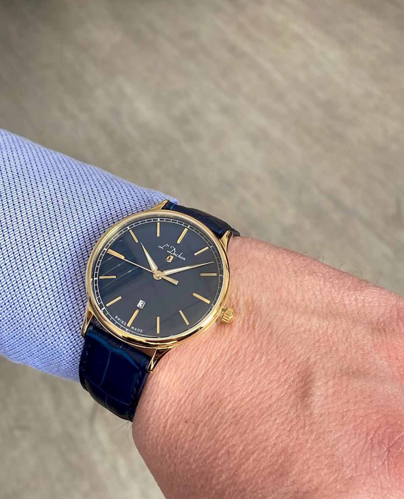 Мужские швейцарские часы L'Duchen Vintage D 821.23.37, кварцевый механизм с высокой точностью. Сапфировое стеклоСапфировое стеклоПрочный и надёжный материал из кристалла сапфира синтетического происхождения, характеризующийся особой твёрдостью и устойчивостью к царапинам и повреждениям. устойчивое к появлению царапин, обладающее высокой прозрачностью. Корпус часов выполнен из нержавеющей стали с PVD-покрытиемPVDУльтратонкое покрытие наносится в технике вакуумного напыления, сочетает в себе нитрид титана особой прочности со слоем золота или оксида хрома. Несёт в себе декоративную или защитную функцию.. Стрелки с люминесцентным покрытиемЛюминесцентное покрытиеПозволяет считывать показания времени в темноте. Производители наносят на стрелки, часовые индексы, безель или поверхность циферблата светонакопительный состав, дающий холодное свечение.. Окошко даты находится в положении 6 часов. Класс водозащиты: 50 метров, позволит защитить корпус от случайных брызг или капель дождя. Кожаный ремешок на застёжке «бабочка» с кнопкамиЗастёжка "бабочка"Такой вид застёжки дополняется предохранителями, помогающими избежать случайного раскрытия браслета. Обладают изящным исполнением. .