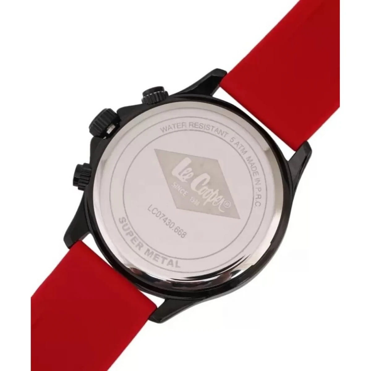 Lee Cooper LC07430.668 — элегантная модель с функциональными возможностями для повседневного использования. Круглый корпус из суперметалла диаметром 44 мм с IP-покрытиемIP-покрытиеМетод ионного напыления. Демонстрирует повышенную устойчивость к истиранию, окислению и химическим веществам. Под воздействием высокого давления и температуры около 1500°C молекулы металла надёжно соединяются с частицами корпуса часов. придаёт часам классический и современный вид. Циферблат защищён минеральным стекломМинеральное стеклоМинеральное стекло представляет собой искусственно выращенный минерал кварца. Такое стекло отличается особой устойчивостью к повреждениям и царапинам. Уступает по некоторым качествам сапфировому стеклу., устойчивым к царапинам, хорошо может выдержать небольшие удары и падения. Часы работают на кварцевом механизме, обеспечивающем точность хода. Каучуковый ремешок красного цвета на стандартной застёжке гарантирует удобную посадку и надёжную фиксацию на запястье. Водозащита 50 метров защищает часы от брызг и дождя, делая их подходящими для повседневного использования.