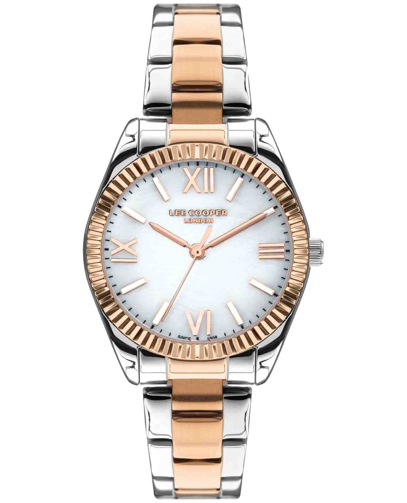 Женские наручные часы Lee Cooper LC07459.520 — это элегантная модель с утончённым дизайном. Корпус диаметром 32 мм выполнен из нсуперметалла, что придаёт часам изысканный вид. Серебристый циферблат украшен изящными римскими цифрами и стрелками обеспечивая удобное считывание времени. Циферблат защищён минеральным стекломМинеральное стеклоМинеральное стекло представляет собой искусственно выращенный минерал кварца. Такое стекло отличается особой устойчивостью к повреждениям и царапинам. Уступает по некоторым качествам сапфировому стеклу., устойчивым к царапинам. Часы работают на кварцевом механизме, обеспечивая точность хода. Браслет из нержавеющей стали с раскладной застёжкойРаскладная застёжкаТакой тип застёжки используется только на браслетах из металла. Она никогда не раскрывается полностью, происходит разделение на 2 и более частей. Раскладывающая застёжка снизит вероятность потери часов к минимуму. гарантирует комфортное ношение и надёжную фиксацию на запястье. Водозащита 30 метров защищает часы от случайных брызг и дождя, делая их подходящими для повседневного использования. Метки покрыты люминесцентным покрытиемЛюминесцентное покрытиеПозволяет считывать показания времени в темноте. Производители наносят на стрелки, часовые индексы, безель или поверхность циферблата светонакопительный состав, дающий холодное свечение., обеспечивая удобное считывание показаний в условиях недостаточного освещения. БезельБезельВнешний ободок, закрепляющий стекло. В спортивных часах так называется поворотное кольцо с делениями на циферблате, выполняет роль таймера – замеряет отрезки времени на шкале. Неподвижный безель – элемент декора. Однонаправленно вращающийся безель на дайверских часах позволяет фиксировать моменты погружения и выныривания на поверхность. с IP-покрытиемIP-покрытиеМетод ионного напыления. Демонстрирует повышенную устойчивость к истиранию, окислению и химическим веществам. Под воздействием высокого давления и температуры около 1500°C молекулы металла надёжно соединяются с частицами корпуса часов..