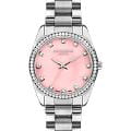 Женские наручные часы Lee Cooper LC07478.380 — это элегантная модель с утончённым дизайном. Корпус диаметром 34 мм выполнен из суперметалла, что придаёт часам изысканный вид. Розовый циферблат украшен изящными стрелками и вставками из циркония в виде меток, обеспечивая удобное считывание времени. Циферблат защищён минеральным стекломМинеральное стеклоМинеральное стекло представляет собой искусственно выращенный минерал кварца. Такое стекло отличается особой устойчивостью к повреждениям и царапинам. Уступает по некоторым качествам сапфировому стеклу., устойчивым к царапинам. Часы работают на кварцевом механизме, обеспечивая точность хода. Браслет из нержавеющей стали с раскладной застёжкойРаскладная застёжкаТакой тип застёжки используется только на браслетах из металла. Она никогда не раскрывается полностью, происходит разделение на 2 и более частей. Раскладывающая застёжка снизит вероятность потери часов к минимуму. гарантирует комфортное ношение и надёжную фиксацию на запястье. Водозащита 30 метров защищает часы от случайных брызг и дождя, делая их подходящими для повседневного использования. БезельБезельВнешний ободок, закрепляющий стекло. В спортивных часах так называется поворотное кольцо с делениями на циферблате, выполняет роль таймера – замеряет отрезки времени на шкале. Неподвижный безель – элемент декора. Однонаправленно вращающийся безель на дайверских часах позволяет фиксировать моменты погружения и выныривания на поверхность. инкрустирован кристаллами. Стрелки покрыты люминесцентным покрытиемЛюминесцентное покрытиеПозволяет считывать показания времени в темноте. Производители наносят на стрелки, часовые индексы, безель или поверхность циферблата светонакопительный состав, дающий холодное свечение., обеспечивая удобное считывание показаний в условиях недостаточного освещения.