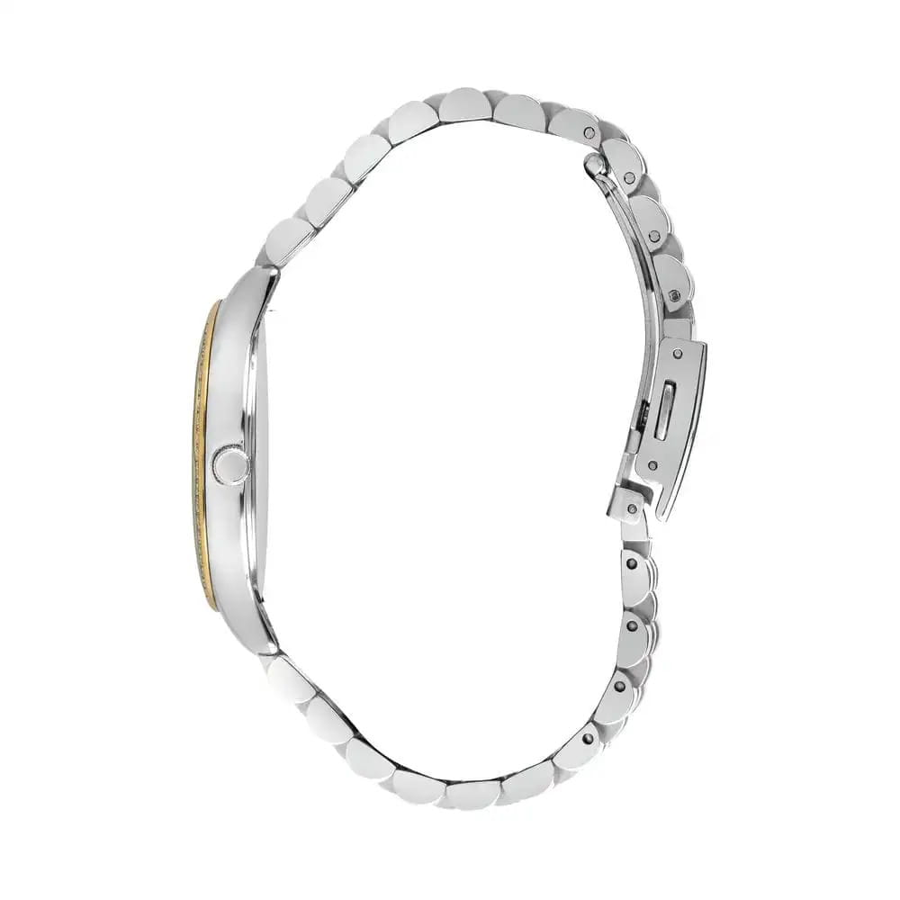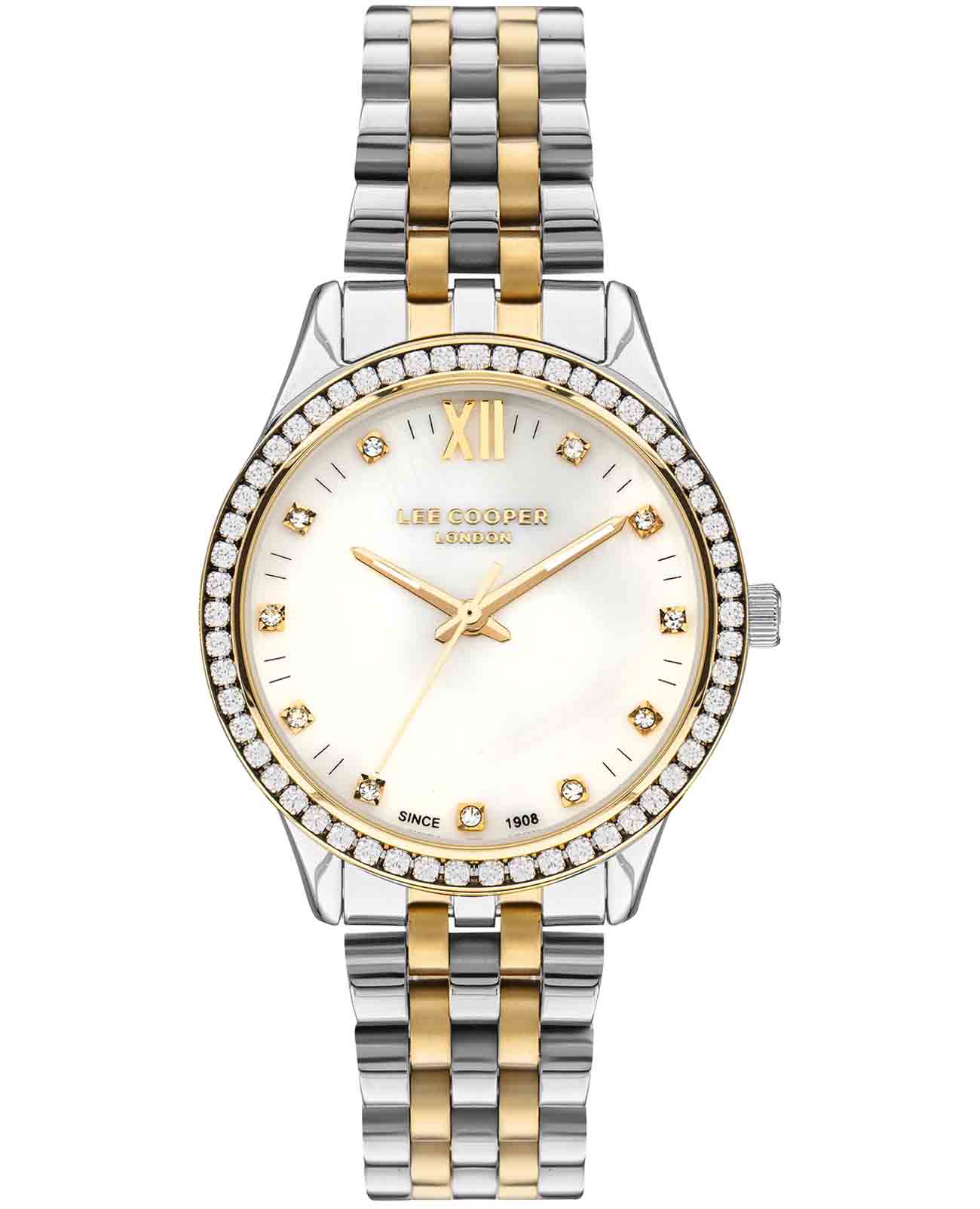 Женские наручные часы Lee Cooper LC07483.220 — это элегантная модель с утончённым дизайном. Корпус диаметром 35 мм выполнен из суперметалла, что придаёт часам изысканный вид. Перламутровый циферблат украшен изящными стрелками и вставками из циркония в виде меток, обеспечивая удобное считывание времени. Циферблат защищён минеральным стекломМинеральное стеклоМинеральное стекло представляет собой искусственно выращенный минерал кварца. Такое стекло отличается особой устойчивостью к повреждениям и царапинам. Уступает по некоторым качествам сапфировому стеклу., устойчивым к царапинам. Часы работают на кварцевом механизме, обеспечивая точность хода. Браслет из нержавеющей стали с раскладной застёжкойРаскладная застёжкаТакой тип застёжки используется только на браслетах из металла. Она никогда не раскрывается полностью, происходит разделение на 2 и более частей. Раскладывающая застёжка снизит вероятность потери часов к минимуму. гарантирует комфортное ношение и надёжную фиксацию на запястье. Водозащита 30 метров защищает часы от случайных брызг и дождя, делая их подходящими для повседневного использования. БезельБезельВнешний ободок, закрепляющий стекло. В спортивных часах так называется поворотное кольцо с делениями на циферблате, выполняет роль таймера – замеряет отрезки времени на шкале. Неподвижный безель – элемент декора. Однонаправленно вращающийся безель на дайверских часах позволяет фиксировать моменты погружения и выныривания на поверхность. с IP-покрытиемIP-покрытиеМетод ионного напыления. Демонстрирует повышенную устойчивость к истиранию, окислению и химическим веществам. Под воздействием высокого давления и температуры около 1500°C молекулы металла надёжно соединяются с частицами корпуса часов. инкрустирован кристаллами. Стрелки покрыты люминесцентным покрытиемЛюминесцентное покрытиеПозволяет считывать показания времени в темноте. Производители наносят на стрелки, часовые индексы, безель или поверхность циферблата светонакопительный состав, дающий холодное свечение., обеспечивая удобное считывание показаний в условиях недостаточного освещения.