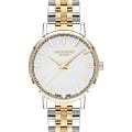 Женские часы Lee Cooper LC07503.220 — это стильное сочетание элегантности и современного дизайна. Круглый корпус диаметром 34 мм выполнен из суперметалла серебристого цвета. Неподвижный безельБезельВнешний ободок, закрепляющий стекло. В спортивных часах так называется поворотное кольцо с делениями на циферблате, выполняет роль таймера – замеряет отрезки времени на шкале. Неподвижный безель – элемент декора. Однонаправленно вращающийся безель на дайверских часах позволяет фиксировать моменты погружения и выныривания на поверхность. с IP-покрытиемIP-покрытиеМетод ионного напыления. Демонстрирует повышенную устойчивость к истиранию, окислению и химическим веществам. Под воздействием высокого давления и температуры около 1500°C молекулы металла надёжно соединяются с частицами корпуса часов. золотого цвета придает модели особый блеск. Белый циферблат защищен минеральным стекломМинеральное стеклоМинеральное стекло представляет собой искусственно выращенный минерал кварца. Такое стекло отличается особой устойчивостью к повреждениям и царапинам. Уступает по некоторым качествам сапфировому стеклу., обеспечивающим устойчивость к царапинам. Метки в виде штрихов. Часы оснащены надежным кварцевым механизмом, а металлический браслет с частичным IP-покрытиемIP-покрытиеМетод ионного напыления. Демонстрирует повышенную устойчивость к истиранию, окислению и химическим веществам. Под воздействием высокого давления и температуры около 1500°C молекулы металла надёжно соединяются с частицами корпуса часов. на раскладной застёжкеРаскладная застёжкаТакой тип застёжки используется только на браслетах из металла. Она никогда не раскрывается полностью, происходит разделение на 2 и более частей. Раскладывающая застёжка снизит вероятность потери часов к минимуму. гарантирует комфортную посадку на запястье. Водозащита 30 метров защищает модель от случайных брызг и дождя. Lee Cooper — отличный выбор для тех, кто ценит утонченность и качество.