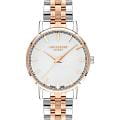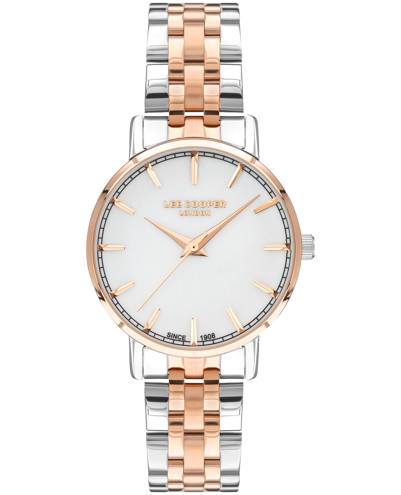 Женские часы Lee Cooper LC07503.520 — это стильное сочетание элегантности и современного дизайна. Круглый корпус диаметром 34 мм выполнен из суперметалла серебристого цвета. Неподвижный безельБезельВнешний ободок, закрепляющий стекло. В спортивных часах так называется поворотное кольцо с делениями на циферблате, выполняет роль таймера – замеряет отрезки времени на шкале. Неподвижный безель – элемент декора. Однонаправленно вращающийся безель на дайверских часах позволяет фиксировать моменты погружения и выныривания на поверхность. с IP-покрытиемIP-покрытиеМетод ионного напыления. Демонстрирует повышенную устойчивость к истиранию, окислению и химическим веществам. Под воздействием высокого давления и температуры около 1500°C молекулы металла надёжно соединяются с частицами корпуса часов. цвета розового золота придает модели особый блеск. Белый циферблат защищен минеральным стекломМинеральное стеклоМинеральное стекло представляет собой искусственно выращенный минерал кварца. Такое стекло отличается особой устойчивостью к повреждениям и царапинам. Уступает по некоторым качествам сапфировому стеклу., обеспечивающим устойчивость к царапинам. Метки в виде штрихов. Часы оснащены надежным кварцевым механизмом, а металлический браслет с частичным IP-покрытиемIP-покрытиеМетод ионного напыления. Демонстрирует повышенную устойчивость к истиранию, окислению и химическим веществам. Под воздействием высокого давления и температуры около 1500°C молекулы металла надёжно соединяются с частицами корпуса часов. на раскладной застёжкеРаскладная застёжкаТакой тип застёжки используется только на браслетах из металла. Она никогда не раскрывается полностью, происходит разделение на 2 и более частей. Раскладывающая застёжка снизит вероятность потери часов к минимуму. гарантирует комфортную посадку на запястье. Водозащита 30 метров защищает модель от случайных брызг и дождя. Lee Cooper — отличный выбор для тех, кто ценит утонченность и качество.