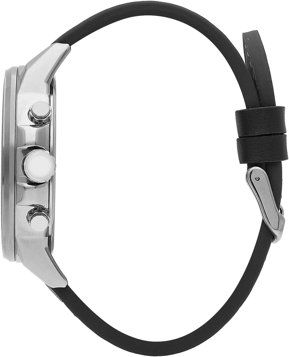 Мужские кварцевые часы Lee Cooper LC07614.351 — это стильный спортивный аксессуар с функциональным дизайном. Корпус диаметром 46 мм выполнен из суперметалла серебристого цвета. Циферблат двухцветный белый и чёрный оформлен индексами и арабскими цифрами. Циферблат защищён минеральным стекломМинеральное стеклоМинеральное стекло представляет собой искусственно выращенный минерал кварца. Такое стекло отличается особой устойчивостью к повреждениям и царапинам. Уступает по некоторым качествам сапфировому стеклу.. Часы оснащены функциями хронографаХронографФункция позволяет измерять отрезки времени с особой точностью: часы, минуты, секунды. Верным признаком хронографа является наличие на циферблате 3 дополнительных окошек-счётчиков., индикации даты и дня недели. Стрелки и метки с люминесцентным покрытиемЛюминесцентное покрытиеПозволяет считывать показания времени в темноте. Производители наносят на стрелки, часовые индексы, безель или поверхность циферблата светонакопительный состав, дающий холодное свечение., обеспечивающим хорошую читаемость в темноте. Часы оснащены кожаным ремешком чёрного цвета с классической пряжкой. Водонепроницаемость 50 м позволяет использовать часы для повседневного ношения, включая мытьё рук и дождь. Универсальный выбор для тех, кто ценит стиль и функциональность.