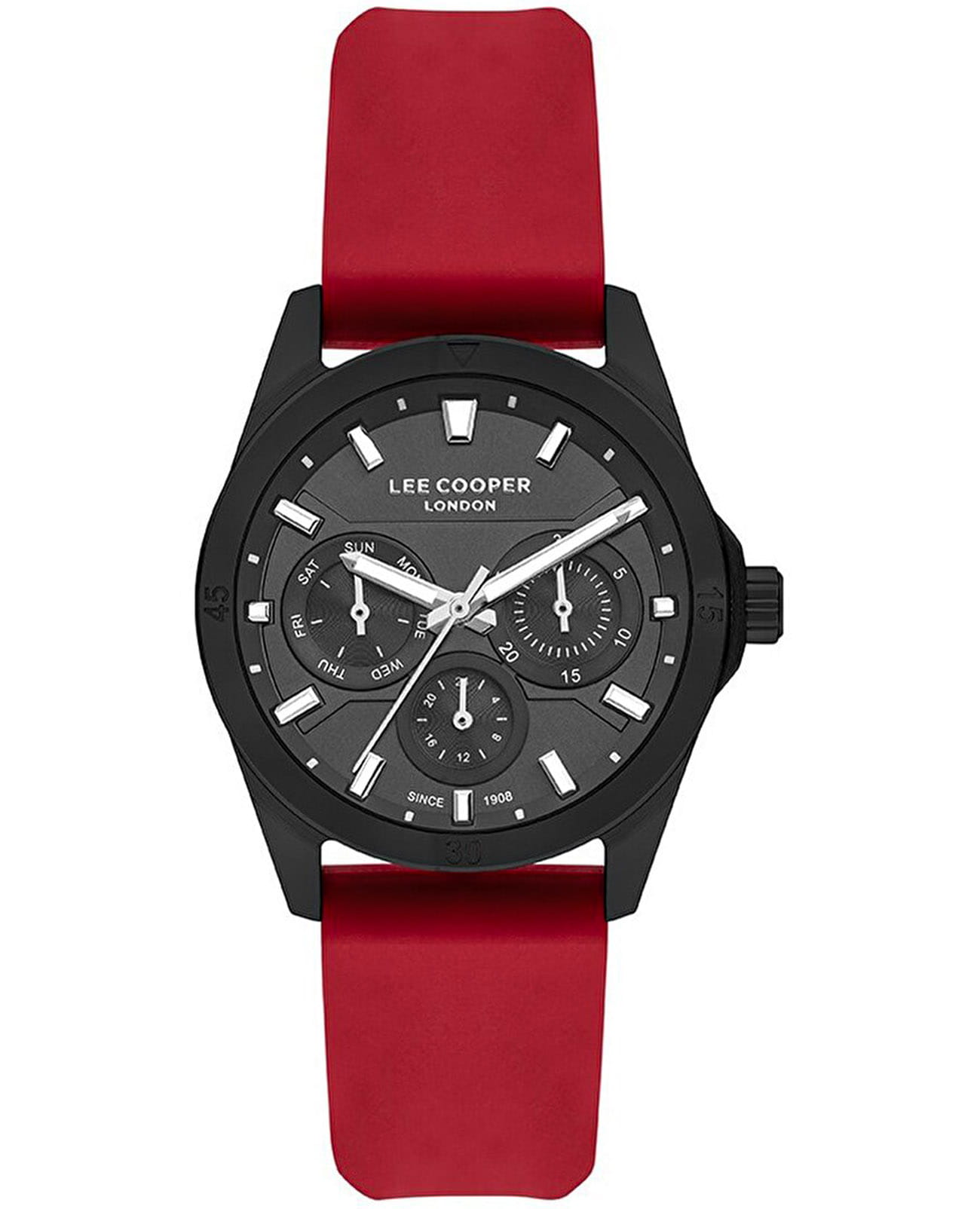 Женские кварцевые часы Lee Cooper LC07625.668 — это мультифункциональный аксессуар с лаконичным дизайном. Корпус диаметром 36 мм выполнен из суперметалла с IP-покрытиемIP-покрытиеМетод ионного напыления. Демонстрирует повышенную устойчивость к истиранию, окислению и химическим веществам. Под воздействием высокого давления и температуры около 1500°C молекулы металла надёжно соединяются с частицами корпуса часов. чёрного цвета. Циферблат чёрного цвета оформлен индексами и дополнен окошками даты, дня недели и 24-часового индикатора. Циферблат защищён минеральным стекломМинеральное стеклоМинеральное стекло представляет собой искусственно выращенный минерал кварца. Такое стекло отличается особой устойчивостью к повреждениям и царапинам. Уступает по некоторым качествам сапфировому стеклу.. Стрелки и метки с люминесцентным покрытиемЛюминесцентное покрытиеПозволяет считывать показания времени в темноте. Производители наносят на стрелки, часовые индексы, безель или поверхность циферблата светонакопительный состав, дающий холодное свечение., обеспечивающим хорошую читаемость в темноте. Часы оснащены силиконовым ремешком красного цвета с классической пряжкой. Водонепроницаемость 30 м позволяет использовать часы в повседневных условиях, защищая от случайных брызг и капель дождя. Универсальный выбор для тех, кто ценит функциональность и надёжность.