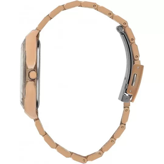 Женские часы Lee Cooper LC07686.410 выполнены в классическом стиле и отличаются лаконичным дизайном и надёжностью. Модель оснащена кварцевым механизмом, обеспечивающим точность хода и минимальное обслуживание. Корпус круглой формы имеет размер 35 мм, изготовлен из суперметалла с IP-покрытиемIP-покрытиеМетод ионного напыления. Демонстрирует повышенную устойчивость к истиранию, окислению и химическим веществам. Под воздействием высокого давления и температуры около 1500°C молекулы металла надёжно соединяются с частицами корпуса часов., а также дополнен минеральным стеклом. Минеральное стеклоМинеральное стеклоМинеральное стекло представляет собой искусственно выращенный минерал кварца. Такое стекло отличается особой устойчивостью к повреждениям и царапинам. Уступает по некоторым качествам сапфировому стеклу., устойчивое к мелким повреждениям. Часы имеют браслет из нержавеющей стали с раскладной застёжкойРаскладная застёжкаТакой тип застёжки используется только на браслетах из металла. Она никогда не раскрывается полностью, происходит разделение на 2 и более частей. Раскладывающая застёжка снизит вероятность потери часов к минимуму. с IP-покрытиемIP-покрытиеМетод ионного напыления. Демонстрирует повышенную устойчивость к истиранию, окислению и химическим веществам. Под воздействием высокого давления и температуры около 1500°C молекулы металла надёжно соединяются с частицами корпуса часов., устойчивым к возникновению аллергических реакций, благодаря использованию качественных материалов. Циферблат оформлен с применением лаконичных индексов — это делает дизайн строгим и функциональным. Благодаря отсутствию лишних деталей модель подходит как аксессуар на каждый день. Часы имеют базовый уровень водозащиты 3 АТМ , что позволяет использовать их в повседневных условиях без риска повреждения от случайных брызг воды или дождя. Это идеальный выбор для тех, кто ценит классический стиль, точность механизма и качество материалов в одном аксессуаре.