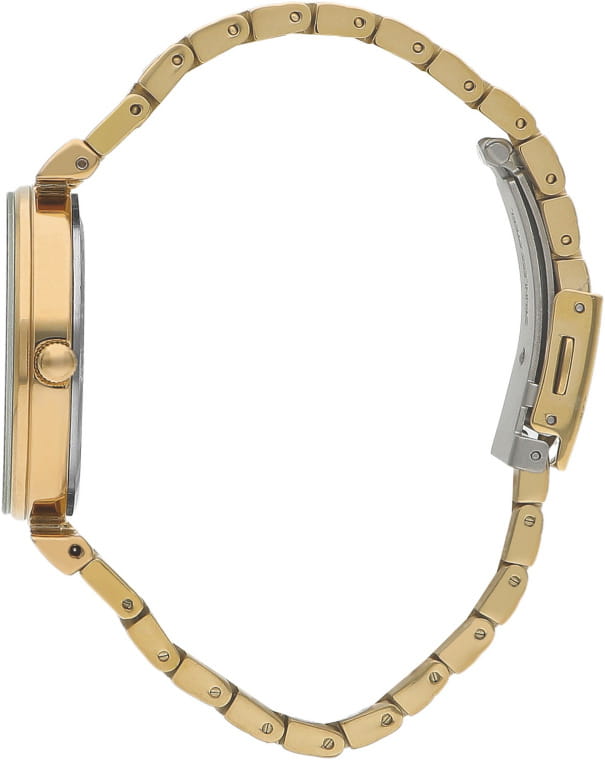 Женские часы Lee Cooper LC07711.270 — это стильное сочетание элегантности и современного дизайна. Круглый корпус диаметром 35 мм выполнен из суперметалла с IP-покрытиемIP-покрытиеМетод ионного напыления. Демонстрирует повышенную устойчивость к истиранию, окислению и химическим веществам. Под воздействием высокого давления и температуры около 1500°C молекулы металла надёжно соединяются с частицами корпуса часов. золотого цвета, придающий модели особый блеск. Изысканный циферблат защищен минеральным стекломМинеральное стеклоМинеральное стекло представляет собой искусственно выращенный минерал кварца. Такое стекло отличается особой устойчивостью к повреждениям и царапинам. Уступает по некоторым качествам сапфировому стеклу., обеспечивающим устойчивость к царапинам. Метки в виде штрихов. Часы оснащены надежным кварцевым механизмом, а стальной браслет с IP-покрытиемIP-покрытиеМетод ионного напыления. Демонстрирует повышенную устойчивость к истиранию, окислению и химическим веществам. Под воздействием высокого давления и температуры около 1500°C молекулы металла надёжно соединяются с частицами корпуса часов. на раскладной застёжкеРаскладная застёжкаТакой тип застёжки используется только на браслетах из металла. Она никогда не раскрывается полностью, происходит разделение на 2 и более частей. Раскладывающая застёжка снизит вероятность потери часов к минимуму. гарантирует комфортную посадку на запястье. Водозащита 30 метров защищает модель от случайных брызг и дождя. Lee Cooper  — отличный выбор для тех, кто ценит утонченность и качество.