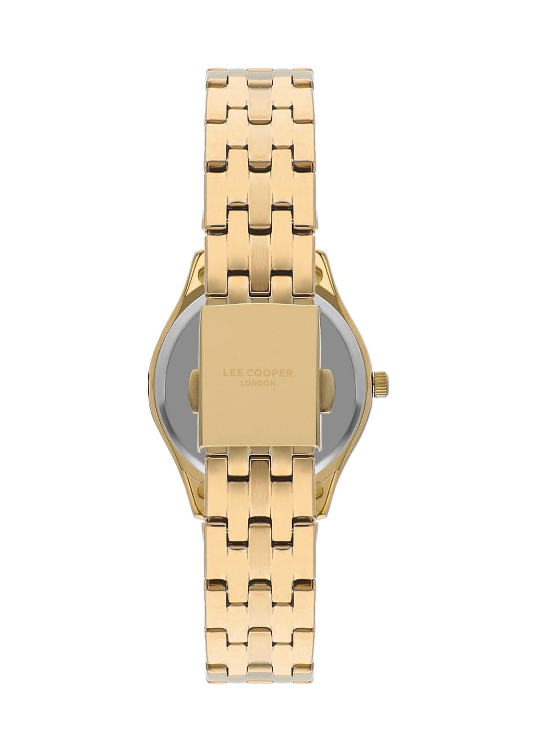 Женские часы Lee Cooper LC07832.120 выполнены в классическом стиле и сочетают строгий дизайн с надёжным механизмом. Модель оснащена кварцевым механизмом, обеспечивающим точность хода и минимальное обслуживание. Корпус круглой формы имеет размер 34 мм, изготовлен из суперметалла с IP-покрытиемIP-покрытиеМетод ионного напыления. Демонстрирует повышенную устойчивость к истиранию, окислению и химическим веществам. Под воздействием высокого давления и температуры около 1500°C молекулы металла надёжно соединяются с частицами корпуса часов., гарантирует комфорт при ношении. Циферблат дополнен изящными вставками из циркона для чёткого отсчёта времени. Защиту циферблата обеспечивает минеральное стеклоМинеральное стеклоМинеральное стекло представляет собой искусственно выращенный минерал кварца. Такое стекло отличается особой устойчивостью к повреждениям и царапинам. Уступает по некоторым качествам сапфировому стеклу., устойчивое к мелким механическим повреждениям. Стрелки с люминесцентным покрытиемЛюминесцентное покрытиеПозволяет считывать показания времени в темноте. Производители наносят на стрелки, часовые индексы, безель или поверхность циферблата светонакопительный состав, дающий холодное свечение.. Стальной браслет с IP-покрытиемIP-покрытиеМетод ионного напыления. Демонстрирует повышенную устойчивость к истиранию, окислению и химическим веществам. Под воздействием высокого давления и температуры около 1500°C молекулы металла надёжно соединяются с частицами корпуса часов. на раскладной застёжкеРаскладная застёжкаТакой тип застёжки используется только на браслетах из металла. Она никогда не раскрывается полностью, происходит разделение на 2 и более частей. Раскладывающая застёжка снизит вероятность потери часов к минимуму. гарантирует удобную посадку и надёжную фиксацию на запястье. Водозащита 30WR позволяет использовать часы в повседневных условиях без риска повреждения от случайных брызг воды. Это сочетание классического дизайна, прочности материалов и качества исполнения для уверенных в себе женщин.