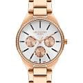 Женские часы Lee Cooper LC07863.430 — это стильное сочетание элегантности и современного дизайна. Круглый корпус диаметром 34 мм выполнен из суперметалла с IP-покрытиемIP-покрытиеМетод ионного напыления. Демонстрирует повышенную устойчивость к истиранию, окислению и химическим веществам. Под воздействием высокого давления и температуры около 1500°C молекулы металла надёжно соединяются с частицами корпуса часов. золотого цвета, а неподвижный безельБезельВнешний ободок, закрепляющий стекло. В спортивных часах так называется поворотное кольцо с делениями на циферблате, выполняет роль таймера – замеряет отрезки времени на шкале. Неподвижный безель – элемент декора. Однонаправленно вращающийся безель на дайверских часах позволяет фиксировать моменты погружения и выныривания на поверхность. украшен цирконами, придающими модели особый блеск. Серебристый циферблат защищен минеральным стекломМинеральное стеклоМинеральное стекло представляет собой искусственно выращенный минерал кварца. Такое стекло отличается особой устойчивостью к повреждениям и царапинам. Уступает по некоторым качествам сапфировому стеклу., обеспечивающим устойчивость к царапинам. Метки в виде штрихов. Часы оснащены надежным кварцевым механизмом, а металлический браслет с IP-покрытиемIP-покрытиеМетод ионного напыления. Демонстрирует повышенную устойчивость к истиранию, окислению и химическим веществам. Под воздействием высокого давления и температуры около 1500°C молекулы металла надёжно соединяются с частицами корпуса часов. на раскладной застёжкеРаскладная застёжкаТакой тип застёжки используется только на браслетах из металла. Она никогда не раскрывается полностью, происходит разделение на 2 и более частей. Раскладывающая застёжка снизит вероятность потери часов к минимуму. гарантирует комфортную посадку на запястье. Мультифункциональная модель с индикацией даты, дня недели, с дополнительным 24-х часовым индикатором. Водозащита 30 метров защищает модель от случайных брызг и дождя. Lee Cooper  — отличный выбор для тех, кто ценит утонченность и качество.