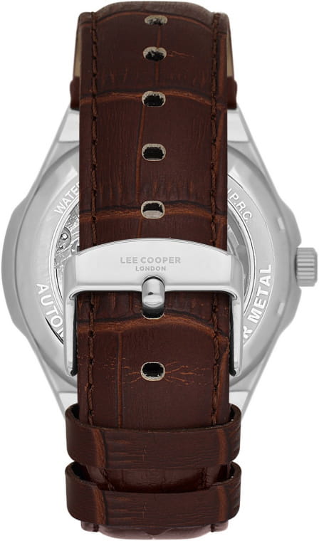 Мужские наручные часы Lee Cooper Мужские наручные часы Lee Cooper LC08050.354 — это стильная модель, сочетающая в себе современный дизайн и функциональность. Корпус часов выполнен из нержавеющей стали серебристого цвета, что делает их устойчивыми к внешним воздействиям и придает благородный вид. Часы оснащены автоподзаводом калибра G3265ZH, который заряжается от движения руки и обеспечивает высокую точность хода. Серо-зеленый циферблат украшен скелетонизированным дизайном, позволяющим наблюдать за работой механизма, что делает часы не только функциональными, но и визуально привлекательными. Для защиты циферблата используется минеральное стеклоМинеральное стеклоМинеральное стекло представляет собой искусственно выращенный минерал кварца. Такое стекло отличается особой устойчивостью к повреждениям и царапинам. Уступает по некоторым качествам сапфировому стеклу., устойчивое к царапинам и механическим повреждениям. Корпус имеет круглую форму диаметром 43 мм, что делает часы заметными и подходящими для повседневного ношения. Ремешок из натуральной кожи с тиснением "под крокодила". Застежка стандартная классическая. Модель обладает водонепроницаемостью до 50 метров (5 АТМ), что позволяет использовать часы в повседневной жизни, включая контакт с водой при мытье рук или дожде. Эти часы станут идеальным выбором для мужчин, ценящих стиль, качество и функциональность.