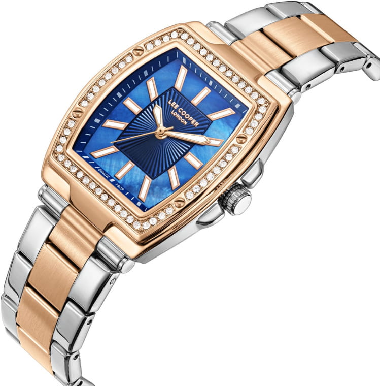 Женские наручные часы Lee Cooper LC08058.590 — это элегантная модель с утончённым дизайном. Корпус диаметром 30 мм выполнен из суперметалла  с IP-покрытиемIP-покрытиеМетод ионного напыления. Демонстрирует повышенную устойчивость к истиранию, окислению и химическим веществам. Под воздействием высокого давления и температуры около 1500°C молекулы металла надёжно соединяются с частицами корпуса часов., что придаёт часам изысканный вид. Синий циферблат украшен  изящными кристаллами, а также метками и стрелками с люминесцентным покрытиемЛюминесцентное покрытиеПозволяет считывать показания времени в темноте. Производители наносят на стрелки, часовые индексы, безель или поверхность циферблата светонакопительный состав, дающий холодное свечение., обеспечивая удобное считывание времени. Циферблат защищён минеральным стекломМинеральное стеклоМинеральное стекло представляет собой искусственно выращенный минерал кварца. Такое стекло отличается особой устойчивостью к повреждениям и царапинам. Уступает по некоторым качествам сапфировому стеклу., устойчивым к царапинам.  Минеральное стеклоМинеральное стеклоМинеральное стекло представляет собой искусственно выращенный минерал кварца. Такое стекло отличается особой устойчивостью к повреждениям и царапинам. Уступает по некоторым качествам сапфировому стеклу. более устойчиво к появлению небольших царапин и потертостей, хорошо может выдержать небольшие удары и падения. Часы работают на кварцевом механизме, обеспечивая точность хода. Браслет из нержавеющей стали с раскладной застёжкойРаскладная застёжкаТакой тип застёжки используется только на браслетах из металла. Она никогда не раскрывается полностью, происходит разделение на 2 и более частей. Раскладывающая застёжка снизит вероятность потери часов к минимуму. гарантирует комфортное ношение и надёжную фиксацию на запястье. Водозащита WR30 защищает часы от случайных брызг и дождя, делая их подходящими для повседневного использования.