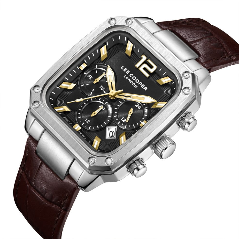 Мужские наручные часы Lee Cooper LC08184.352 оснащены кварцевым механизмом, обеспечивающий высокую точность хода и надежность. Элегантный корпус часов выполнен из суперметалла серебристого цвета, что делает их устойчивыми к внешним воздействиям и придает благородный вид. Циферблат украшен классическими стрелками и метками с люминесцентным покрытиемЛюминесцентное покрытиеПозволяет считывать показания времени в темноте. Производители наносят на стрелки, часовые индексы, безель или поверхность циферблата светонакопительный состав, дающий холодное свечение., гармонично дополняющим общий дизайн модели. Для защиты циферблата используется минеральное стеклоМинеральное стеклоМинеральное стекло представляет собой искусственно выращенный минерал кварца. Такое стекло отличается особой устойчивостью к повреждениям и царапинам. Уступает по некоторым качествам сапфировому стеклу., устойчивое к царапинам и механическим повреждениям. Корпус размером 39 мм x 49 мм, что делает часы заметными и подходящими. Кожаный ремешок на стандартной застёжке обеспечивает комфортное и безопасное ношение. Окошко даты находится в положении между 4 и 5 часов. Часы обладают водонепроницаемостью до 30 метров (3 АТМ), что позволяет использовать их в повседневной жизни, включая контакт с водой при мытье рук или дожде. Эти часы станут идеальным выбором для мужчин, ценящих стиль, качество и функциональность.