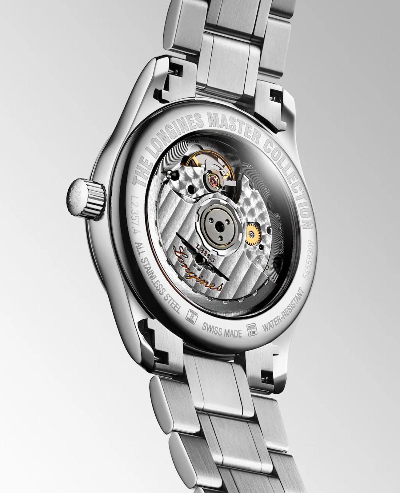Женские швейцарские механические часы с автоподзаводом Longines Master Collection L2.357.4.99.6. Сапфировое стеклоСапфировое стеклоПрочный и надёжный материал из кристалла сапфира синтетического происхождения, характеризующийся особой твёрдостью и устойчивостью к царапинам и повреждениям. устойчивое к появлению царапин, обладающее высокой прозрачностью. Корпус часов изготовлен из нержавеющей стали. Циферблат с 12 бриллиантами группы Top Wesselton VS-SI общим весом 0.055 карата. Окошко даты в положении 3 часов. Прозрачная задняя крышка. Класс водозащиты: 30 метров, позволит защитить корпус от случайных брызг или капель дождя. Стальной браслет на застёжке «бабочка» с кнопкамиЗастёжка "бабочка"Такой вид застёжки дополняется предохранителями, помогающими избежать случайного раскрытия браслета. Обладают изящным исполнением. .