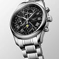 Мужсике швейцарские механические часы-хронографХронографФункция позволяет измерять отрезки времени с особой точностью: часы, минуты, секунды. Верным признаком хронографа является наличие на циферблате 3 дополнительных окошек-счётчиков. с автоподзаводом Longines Master Collection L2.773.4.51.6. Сапфировое стеклоСапфировое стеклоПрочный и надёжный материал из кристалла сапфира синтетического происхождения, характеризующийся особой твёрдостью и устойчивостью к царапинам и повреждениям. устойчивое к появлению царапин, обладающее высокой прозрачностью. Корпус часов изготовлен из нержавеющей стали. Функции: часы, минуты, малая секундная стрелка с 24-часовым индикатором в положении 9 часов. Дату показывает центральная стрелка с серповидным наконечником. Указатель фаз Луны в положении 6 часов. Прозрачная задняя крышка. Класс водозащиты: 30 метров, позволит защитить корпус от случайных брызг или капель дождя. Стальной браслет на застёжке «бабочка» с кнопкамиЗастёжка "бабочка"Такой вид застёжки дополняется предохранителями, помогающими избежать случайного раскрытия браслета. Обладают изящным исполнением. .