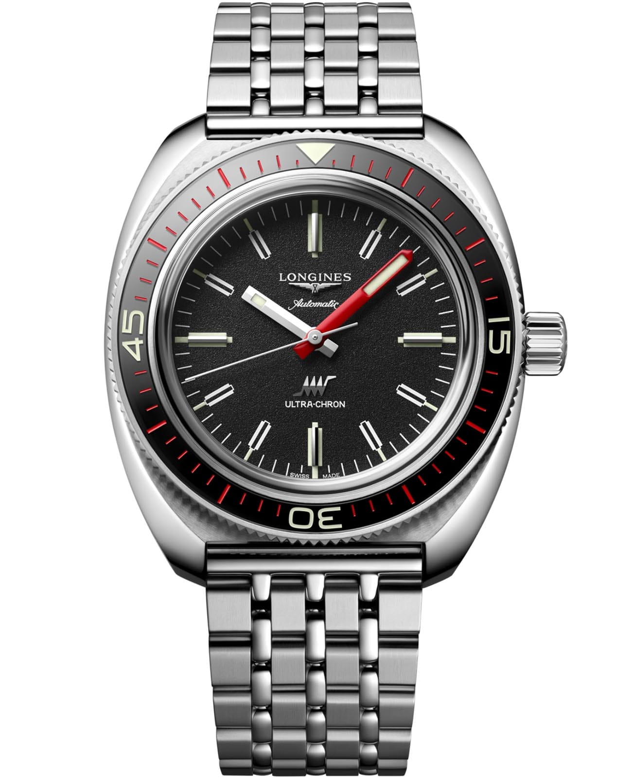 Часы Longines Ultra-Chron L2.836.4.52.9 доступны в версии Box Edition, которая поставляется с кожаным ремешком и поставляется в специальной подарочной коробке с черным ремешком NATO, изготовленным из переработанного материала. Предоставляется инструмент для легкого переключения между ремешками для создания нового образа. Вдохновленная оригинальным Longines Ultra-Chron Diver 1968 года, новая модель и ее новый высокочастотный калибр представляют собой первое переосмысление того, что отличает Longines - его статус пионера в мире спортивного тайминга. Он понравится как поклонникам винтажных часов, так и любителям высоких технологий. Точность Longines Ultra-Chron подтверждается его сертификацией в качестве «ультрахронометра» независимой испытательной лабораторией TIMELAB в Женеве. Это обозначение выходит за рамки обычной сертификации «хронометра». Класс водозащиты 300 м. специально предназначен для глубоководных погружений. Они смогут сопровождать своего владельца в самых отчаянных путешествиях. Эти часы незаменимы для мужчин, ведущих активный образ жизни. Устойчивое к царапинам сапфировое стеклоСапфировое стеклоПрочный и надёжный материал из кристалла сапфира синтетического происхождения, характеризующийся особой твёрдостью и устойчивостью к царапинам и повреждениям. с несколькими слоями антибликового покрытия с обеих сторон. Механический механизм с автоматическим подзаводом, работающий со скоростью 36 000 вибраций в час, с монокристаллическим кремниевым балансировым запасом хода около 52 часов. Стрелки и метки с люминесцентным покрытиемЛюминесцентное покрытиеПозволяет считывать показания времени в темноте. Производители наносят на стрелки, часовые индексы, безель или поверхность циферблата светонакопительный состав, дающий холодное свечение.. Стальной браслет на раскладной застёжкеРаскладная застёжкаТакой тип застёжки используется только на браслетах из металла. Она никогда не раскрывается полностью, происходит разделение на 2 и более частей. Раскладывающая застёжка снизит вероятность потери часов к минимуму..