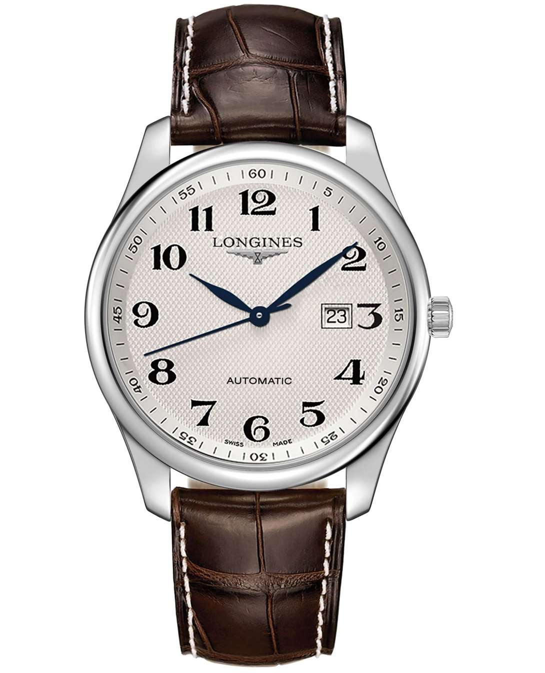 Женские швейцарские механические часы с автоподзаводом Longines Master Collection L2.893.4.78.3. Сапфировое стеклоСапфировое стеклоПрочный и надёжный материал из кристалла сапфира синтетического происхождения, характеризующийся особой твёрдостью и устойчивостью к царапинам и повреждениям. устойчивое к появлению царапин, обладающее высокой прозрачностью. Корпус часов изготовлен из нержавеющей стали. Окошко даты в положении 3 часа. Автоматический механизм с частотой баланса 25 200 полуколебаний в час и запасом хода, которого хватает примерно на 72 часа работы. Прозрачная задняя крышка. Класс водозащиты: 30 метров, позволит защитить корпус от случайных брызг или капель дождя. Кожаный ремешок на застёжке «бабочка» с кнопкамиЗастёжка "бабочка"Такой вид застёжки дополняется предохранителями, помогающими избежать случайного раскрытия браслета. Обладают изящным исполнением. .