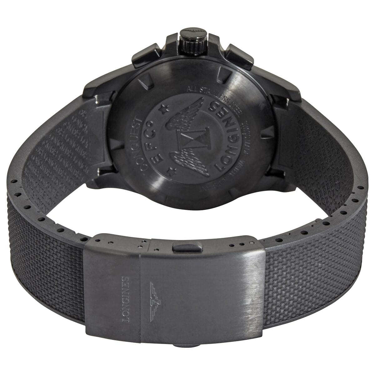 Черный ремешок из каучука стильно смотрится на запястье. Корпус выполнен из нержавеющей стали с PVD-покрытиемPVDУльтратонкое покрытие наносится в технике вакуумного напыления, сочетает в себе нитрид титана особой прочности со слоем золота или оксида хрома. Несёт в себе декоративную или защитную функцию.. Швейцарский кварцевый механизм L289 демонстрирует абсолютную точность хода. Сапфировое стекло имеет антибликовое покрытиеАнтибликовое покрытиеСлой оксида металла в 0,13-0,3 микрон, благодаря которому стекло часов не бликует и не отражает свет. Антибликовое покрытие уменьшает отражение света в 10 раз, обеспечивая отличную читаемость показателей циферблата.. Функции: вечный календарь, индикатор EOLEOLПредставляет собой систему, уведомляющую владельца часов о необходимости замены элемента питания. За 2 недели до полного разряда батарейки секундная стрелка перестаёт ходить чётко и начинает перепрыгивать на 3-4 деления., хронограф.