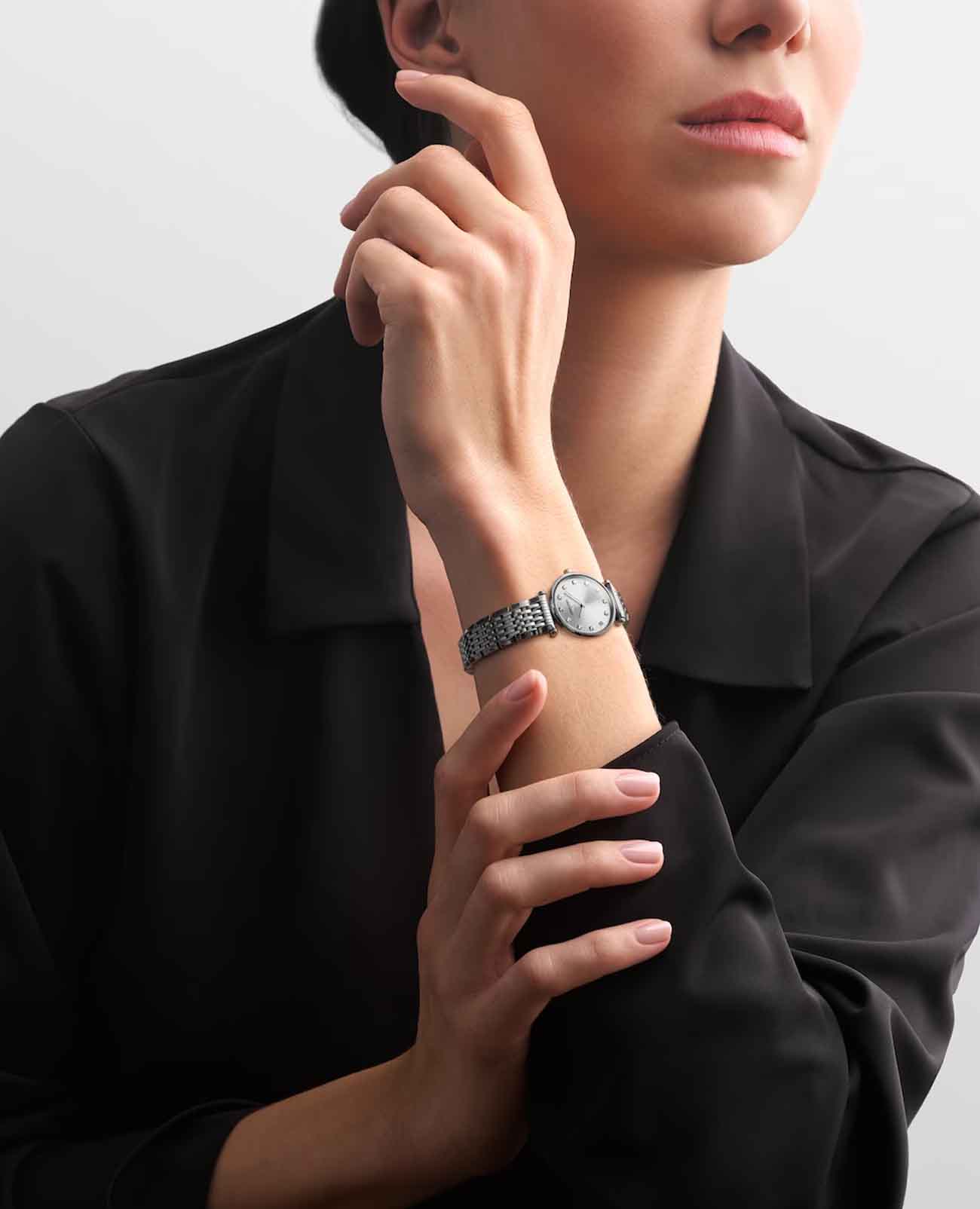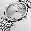 Женские швейцарские часы Longines La Grande Classique L4.209.4.70.6, кварцевый механизм с высокой точностью. Сапфировое стеклоСапфировое стеклоПрочный и надёжный материал из кристалла сапфира синтетического происхождения, характеризующийся особой твёрдостью и устойчивостью к царапинам и повреждениям. устойчивое к появлению царапин, обладающее высокой прозрачностью. Корпус часов изготовлен из стали. Циферблат с 12 бриллиантами группы Top Wesselton VS-SI общим весом 0.048 карата. Класс водозащиты: 30 метров, позволит защитить корпус от случайных брызг или капель дождя. Стальной браслет на застёжке-бабочке с кнопкамиЗастёжка "бабочка"Такой вид застёжки дополняется предохранителями, помогающими избежать случайного раскрытия браслета. Обладают изящным исполнением. .