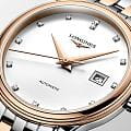 Стальной браслет с частичным PVD-покрытиемPVDУльтратонкое покрытие наносится в технике вакуумного напыления, сочетает в себе нитрид титана особой прочности со слоем золота или оксида хрома. Несёт в себе декоративную или защитную функцию. на застёжке-бабочке с кнопкамиЗастёжка "бабочка"Такой вид застёжки дополняется предохранителями, помогающими избежать случайного раскрытия браслета. Обладают изящным исполнением. подчеркивает стиль и изысканность модели, делая ее идеальным выбором для тех, кто ценит качество и элегантность. Longines Flagship — это не просто часы, а настоящее произведение часового искусства, способное подчеркнуть вашу индивидуальность и статус.