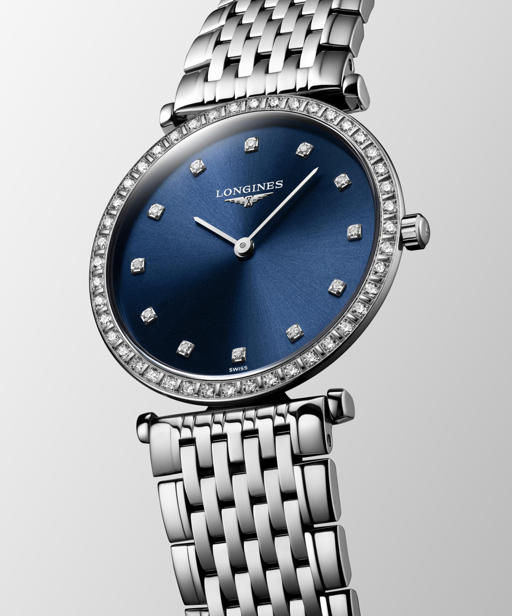 Женские швейцарские часы Longines La Grande Classique L4.523.0.97.6 – стильный вариант для делового образа. Компактный синий циферблат украшен 12 бриллиантами общим весом 0,034 карата. Корпус часов декорирован 44 бриллиантами общим весом 0.369 карата. Элегантным дополнением является стальной браслет оригинального плетения. Швейцарский кварцевый калибр L420 обеспечивает высокую точность хода. Сапфировое стекло не допускает появления царапин на поверхности.