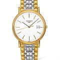 Мужские швейцарские часы Longines Presence L4.790.2.12.7 – образец классического стиля. Белый матовый циферблат идеально сочетается с браслетом с жёлтым PVD-покрытиемPVDУльтратонкое покрытие наносится в технике вакуумного напыления, сочетает в себе нитрид титана особой прочности со слоем золота или оксида хрома. Несёт в себе декоративную или защитную функцию.. Корпус из нержавеющей стали 316L надёжно защищает швейцарский кварцевый механизм L157 от повреждений. Дополнительные функции: календарь, индикатор EOLEOLПредставляет собой систему, уведомляющую владельца часов о необходимости замены элемента питания. За 2 недели до полного разряда батарейки секундная стрелка перестаёт ходить чётко и начинает перепрыгивать на 3-4 деления.. Производство и сборка: Швейцария.