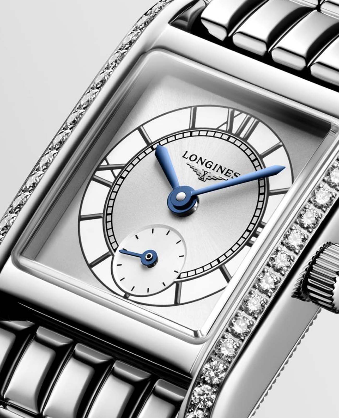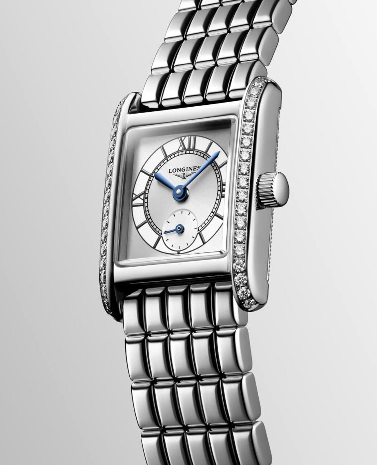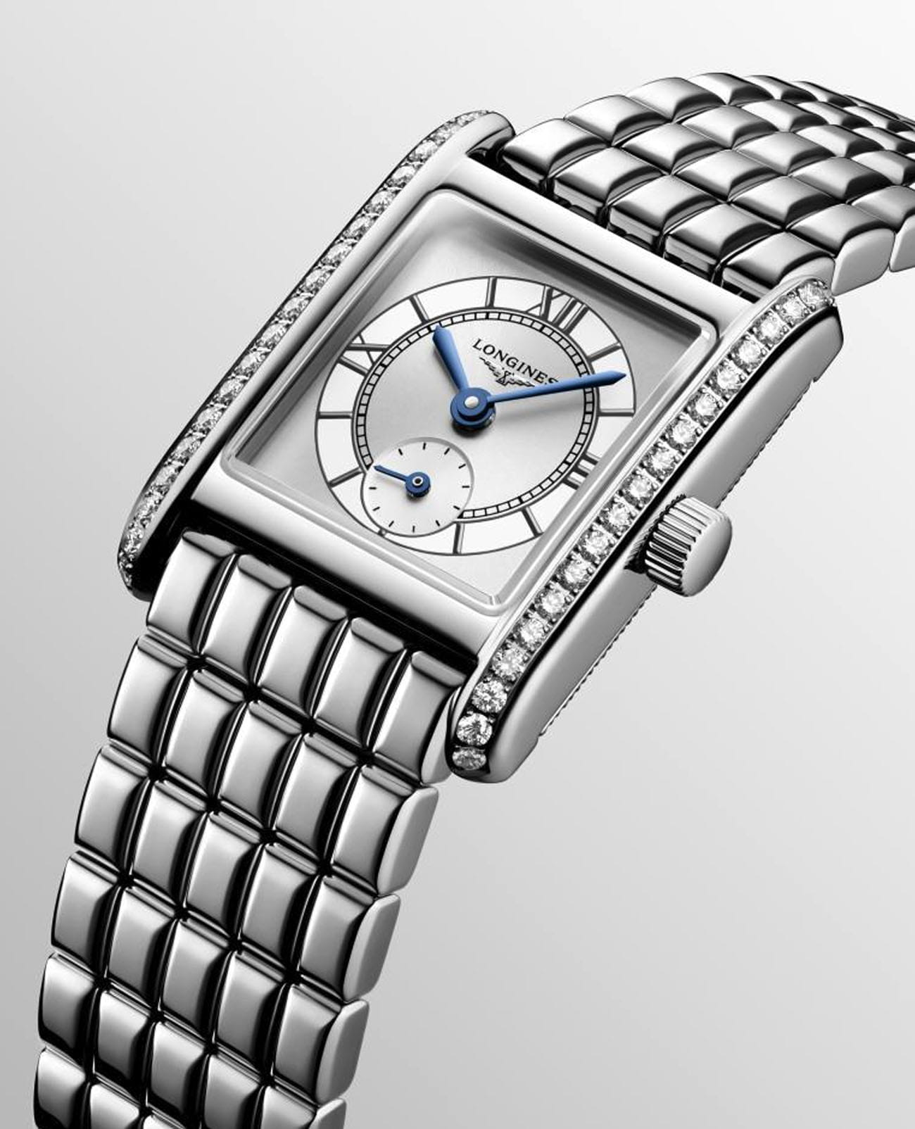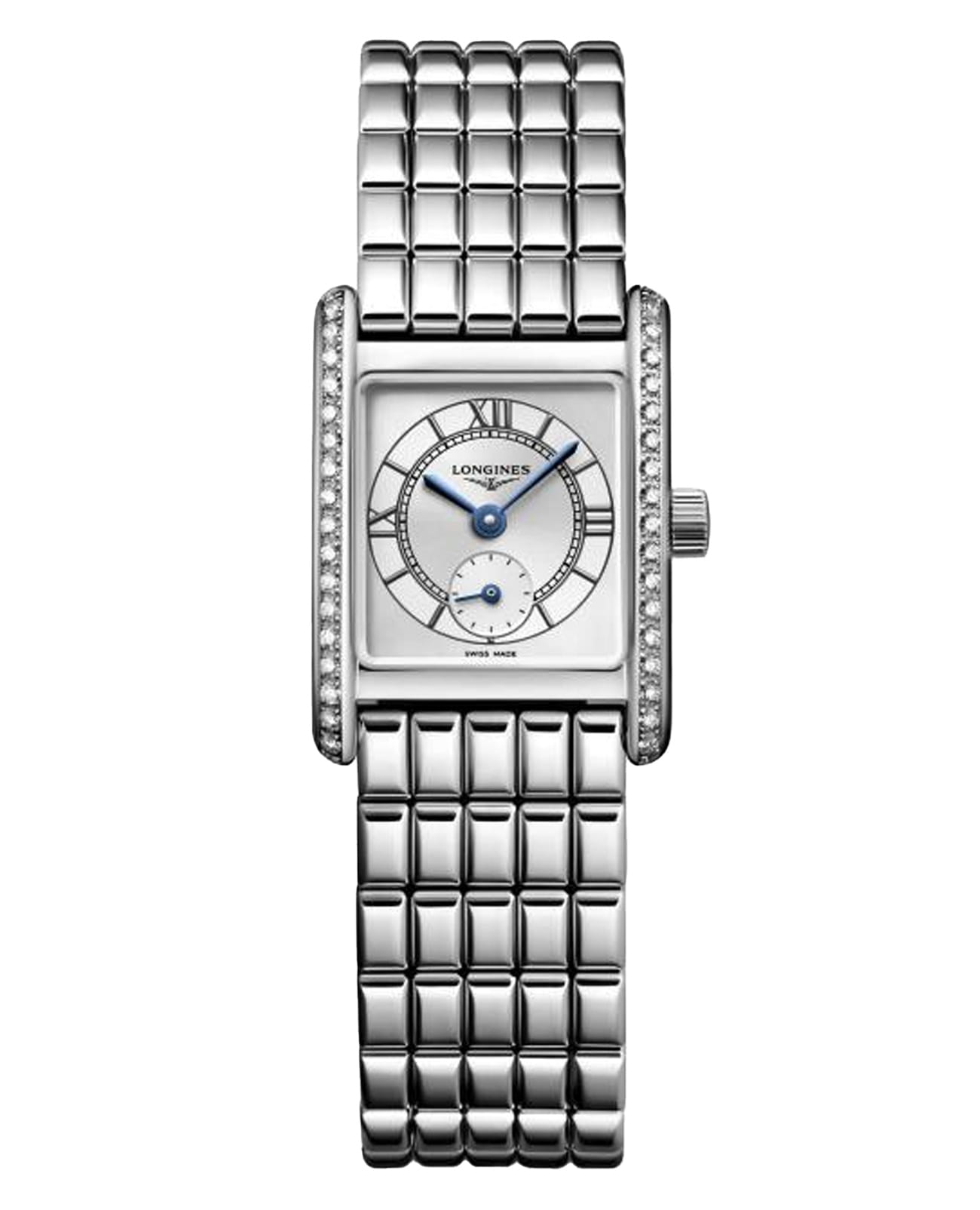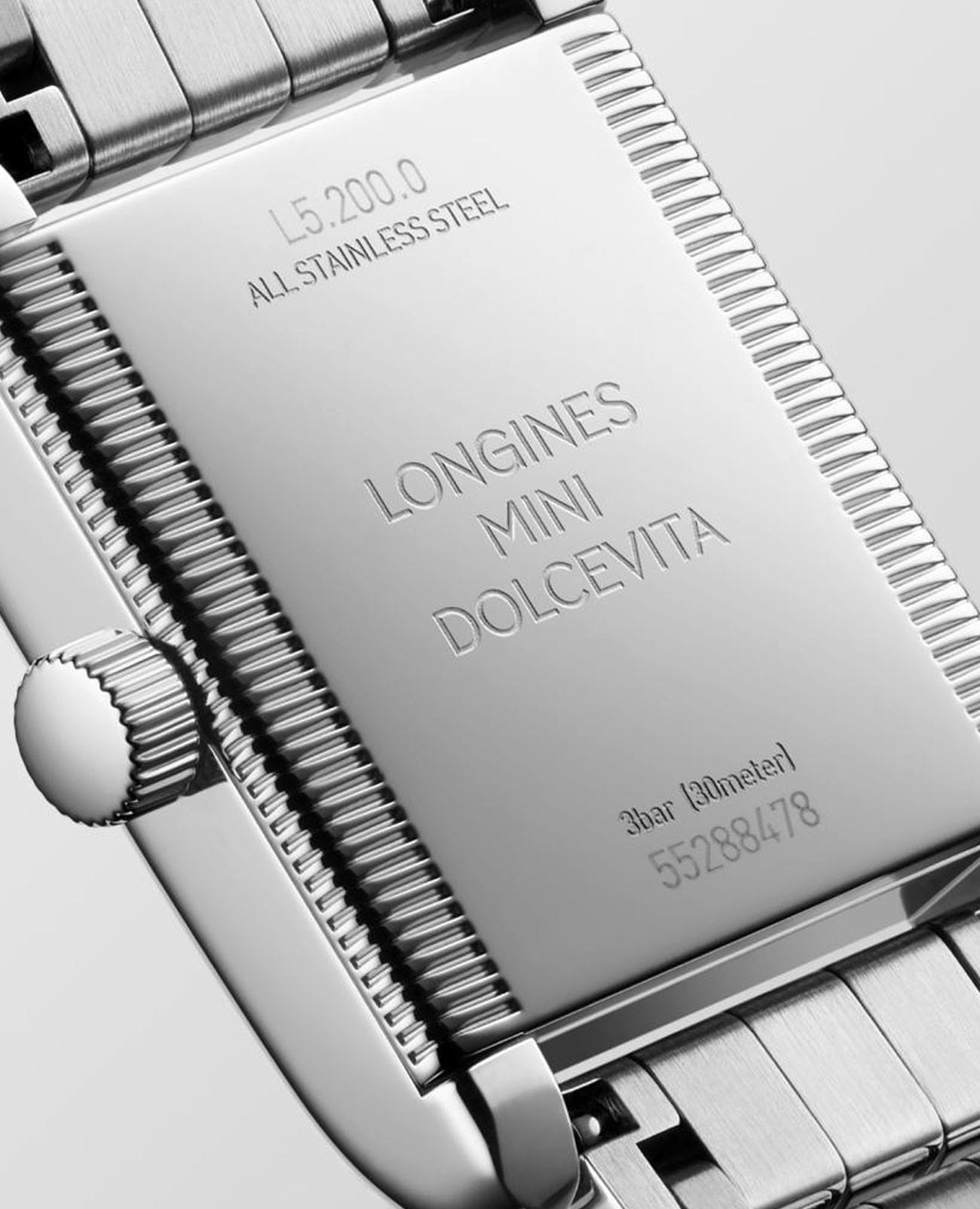 Женские швейцарские часы Longines DolceVita L5.200.0.75.6, кварцевый механизм с высокой точностью. Сапфировое стеклоСапфировое стеклоПрочный и надёжный материал из кристалла сапфира синтетического происхождения, характеризующийся особой твёрдостью и устойчивостью к царапинам и повреждениям. устойчивое к появлению царапин, обладающее высокой прозрачностью. Корпус инкрустирован 38 бриллиантами IF-VVS Top Wesselton. Круглый циферблат Cosmo внутри прямоугольного корпуса привлекает внимание своей бескомпромиссной элегантностью. Малая секундная стрелка в положении 6 часов. Класс водозащиты: 30 метров, позволит защитить корпус от случайных брызг или капель дождя. Браслет из нержавеющей стали на застёжке «бабочка» с кнопкамиЗастёжка "бабочка"Такой вид застёжки дополняется предохранителями, помогающими избежать случайного раскрытия браслета. Обладают изящным исполнением. .