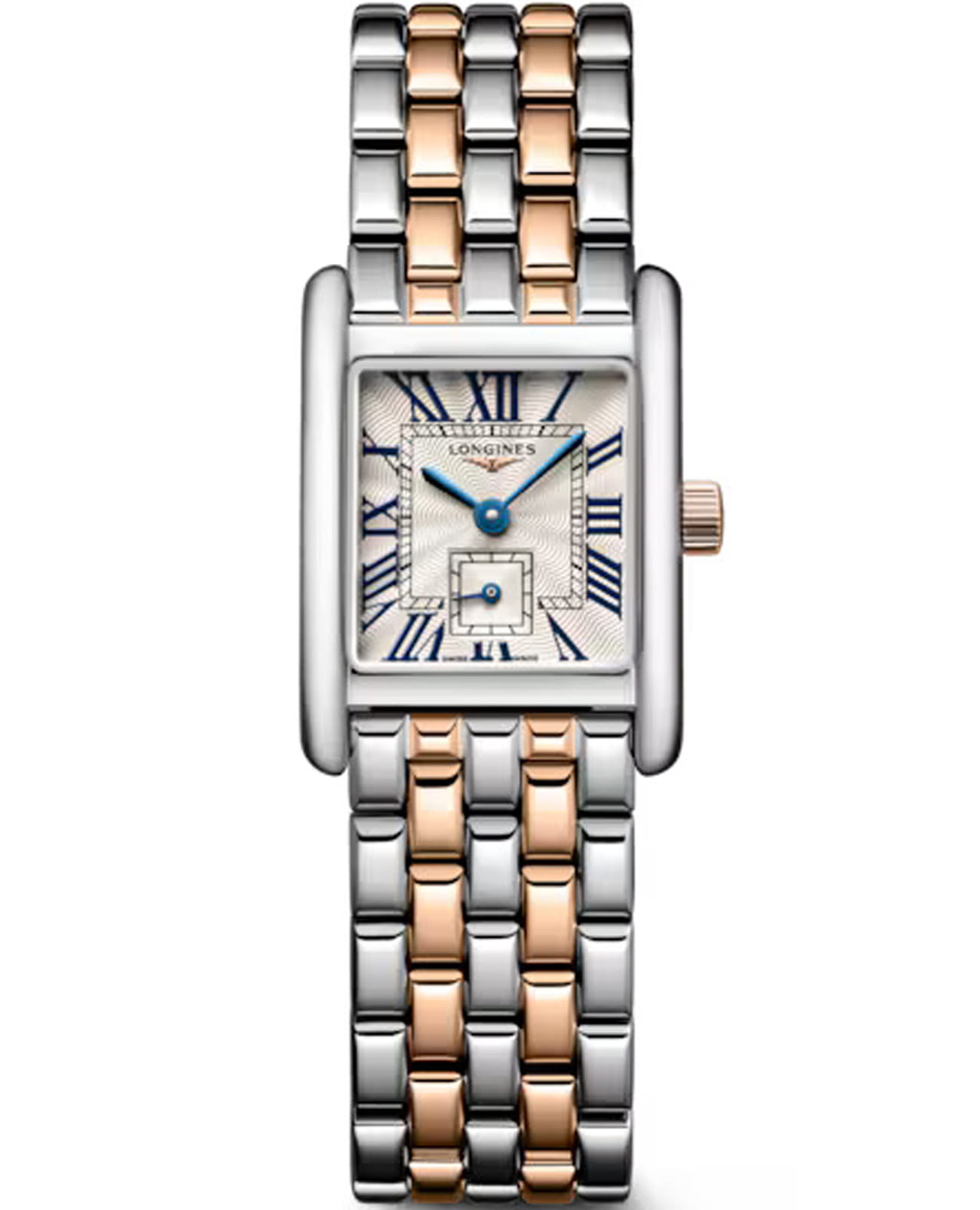 Женские изысканные швейцарские часы Longines DolceVita L5.200.5.71.7, кварцевый механизм с высокой точностью. Эти часы обладают сапфировым стекломСапфировое стеклоПрочный и надёжный материал из кристалла сапфира синтетического происхождения, характеризующийся особой твёрдостью и устойчивостью к царапинам и повреждениям., многослойное антибликовое покрытиеАнтибликовое покрытиеСлой оксида металла в 0,13-0,3 микрон, благодаря которому стекло часов не бликует и не отражает свет. Антибликовое покрытие уменьшает отражение света в 10 раз, обеспечивая отличную читаемость показателей циферблата. обеспечивает превосходную прозрачность и устойчивость к царапинам, словно невидимый щит, оберегающий ваш драгоценный аксессуар. Элегантный корпус часов с браслетом из нержавеющей стали и розового золота. Стальной браслет на застёжке-бабочке с кнопкамиЗастёжка "бабочка"Такой вид застёжки дополняется предохранителями, помогающими избежать случайного раскрытия браслета. Обладают изящным исполнением. . Стрелки подчеркивают статус и утонченность модели. Водозащита класса 30 метров гарантирует надежную защиту от случайных брызг и капель дождя, позволяя вам наслаждаться часами в любых погодных условиях. Эти часы станут не только функциональным аксессуаром, но и настоящим произведением искусства, достойным внимания и восхищения. Longines L5.200.5.71.7 – это воплощение швейцарской точности, надежности и элегантности, которое будет радовать вас своим безупречным стилем и непревзойденным качеством на протяжении многих лет.застежке.