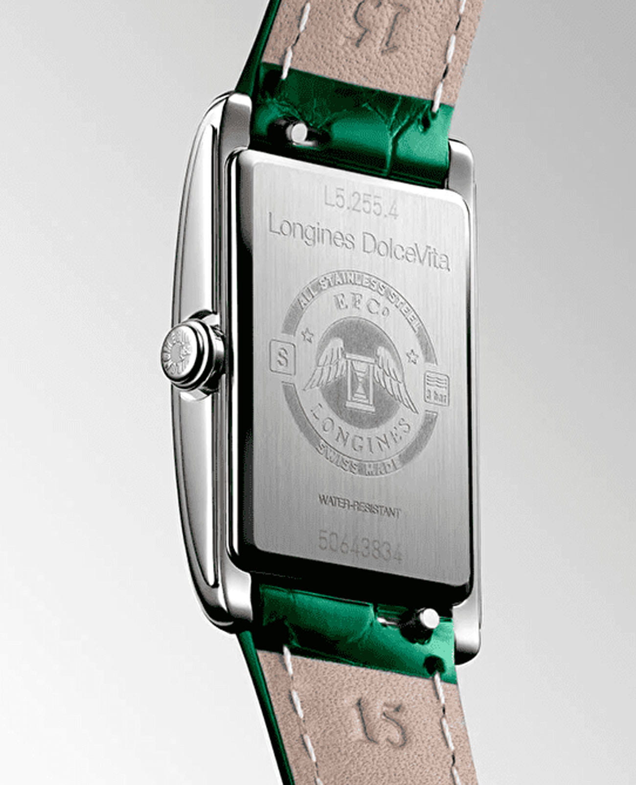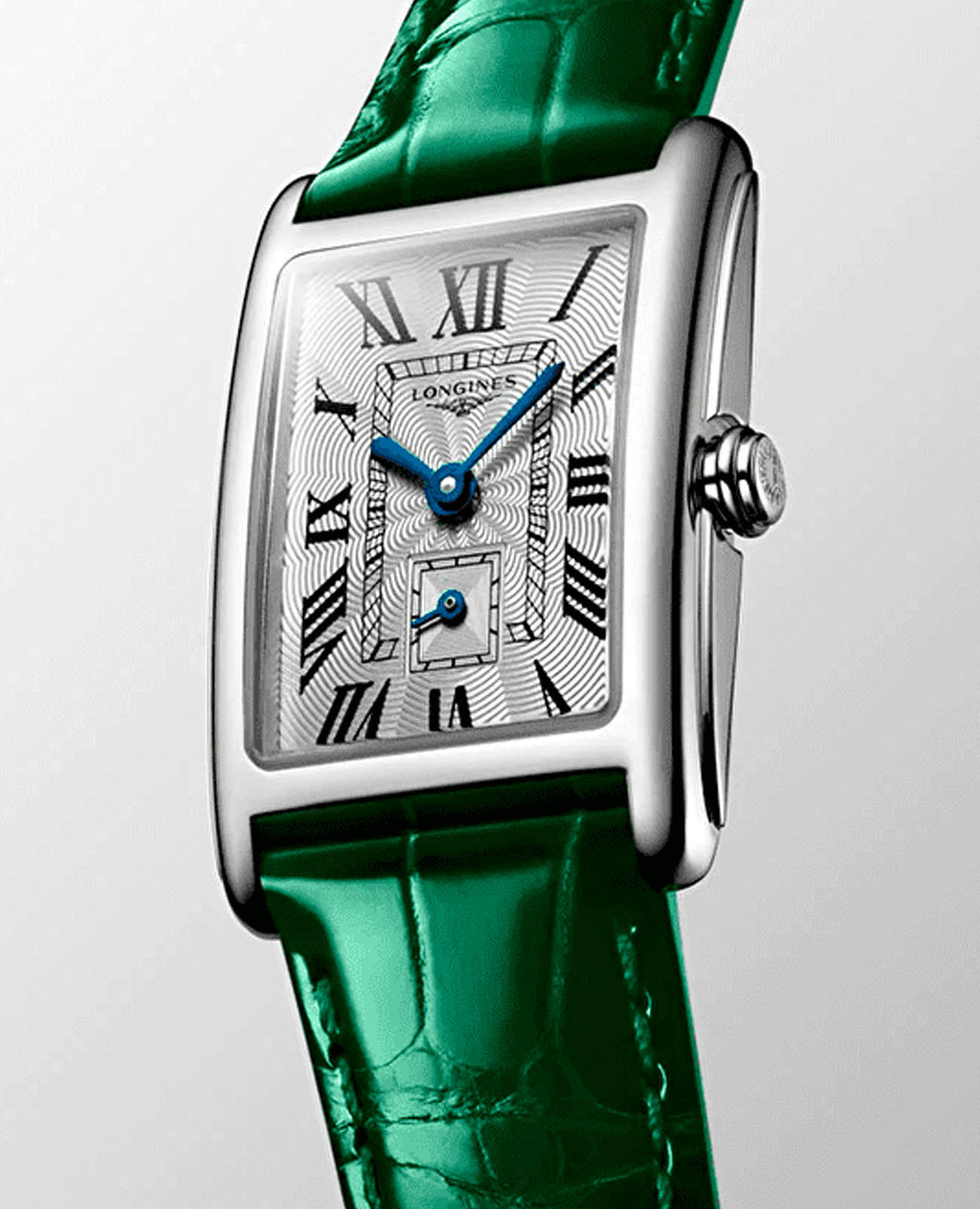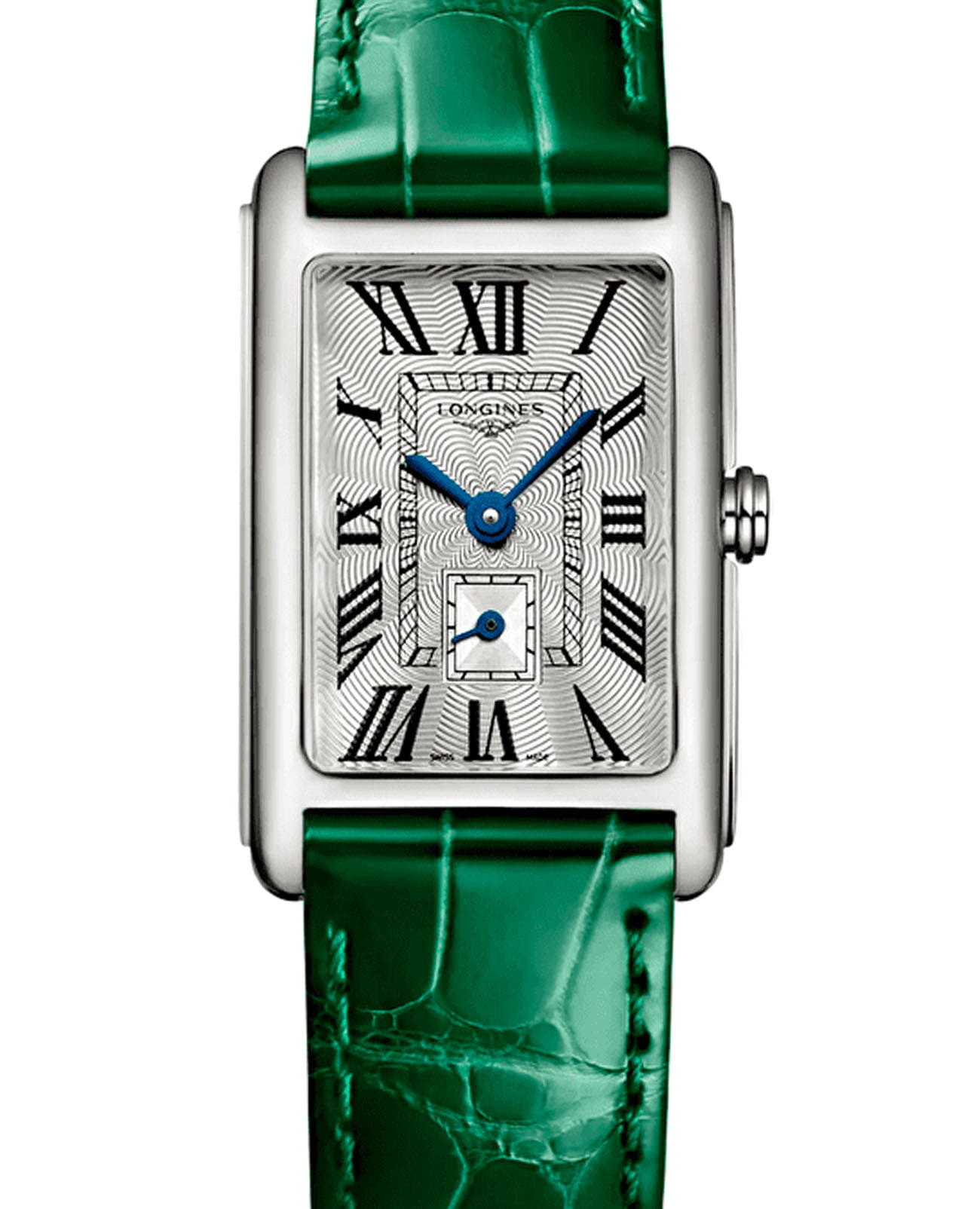 Женские швейцарские часы Longines DolceVita L5255471A, кварцевый механизм с высокой точностью. Сапфировое стеклоСапфировое стеклоПрочный и надёжный материал из кристалла сапфира синтетического происхождения, характеризующийся особой твёрдостью и устойчивостью к царапинам и повреждениям. устойчивое к появлению царапин, обладающее высокой прозрачностью. Корпус часов изготовлен из нержавеющей стали. Циферблат украшен узором «Flinque», метки в виде римских цифр. Окошко даты в положении 6 часов. Класс водозащиты: 30 метров, позволит защитить корпус от случайных брызг или капель дождя. Ремешок из кожи аллигатора с системой быстрой замены на стандартной застежке.