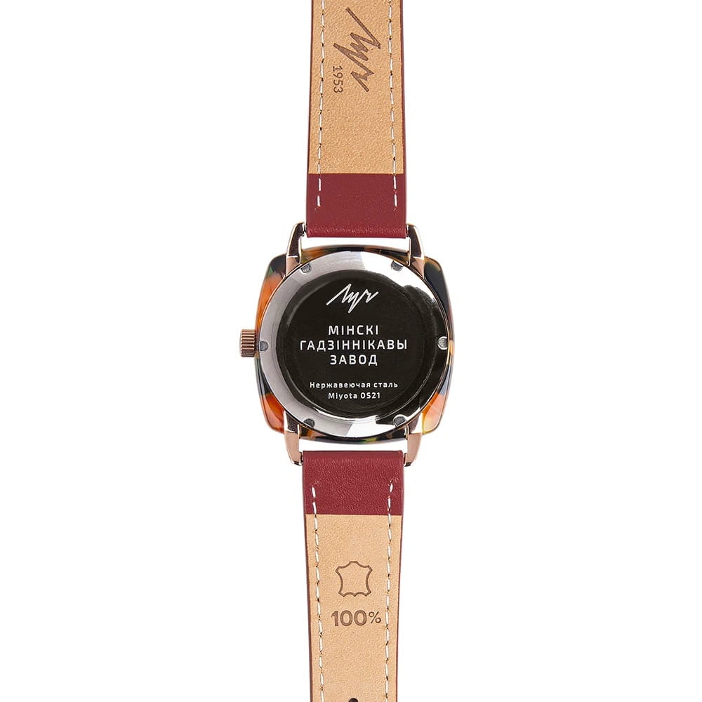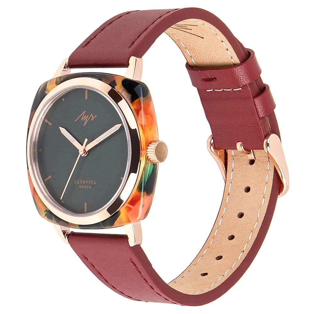 Женские наручные часы Луч 80`s 740247582 — это стильное сочетание элегантности и современного дизайна. Часы идеально подходят для повседневного ношения, а также для особых случаев. Изысканный корпус диаметром 36 мм выполнен из нержавеющей стали с PVD-покрытиемPVDУльтратонкое покрытие наносится в технике вакуумного напыления, сочетает в себе нитрид титана особой прочности со слоем золота или оксида хрома. Несёт в себе декоративную или защитную функцию. и цельного куска пластика, благодаря чему каждый экземпляр обладает уникальным, неповторимым узором. Циферблат защищен минеральным стекломМинеральное стеклоМинеральное стекло представляет собой искусственно выращенный минерал кварца. Такое стекло отличается особой устойчивостью к повреждениям и царапинам. Уступает по некоторым качествам сапфировому стеклу., обеспечивающим устойчивость к царапинам. Метки в виде штрихов, изящная лаконичная стрелка. Часы оснащены кварцевым механизмом высокой точности, а ремешок из кожи со стандартной застежкой гарантирует комфортную посадку на запястье. Стрелки с люминесцентным покрытиемЛюминесцентное покрытиеПозволяет считывать показания времени в темноте. Производители наносят на стрелки, часовые индексы, безель или поверхность циферблата светонакопительный состав, дающий холодное свечение.. Водозащита 30 метров позволит защитить корпус от случайных брызг или капель дождя. Луч — отличный выбор для тех, кто ценит утонченность и качество.