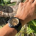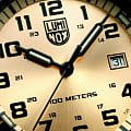 Мужские наручные часы Luminox XS.0325.GP из коллекции Leatherback SEA Turtle Giant сочетают в себе спортивный дизайн и надежность швейцарского качества. Модель обладает круглым корпусом диаметром 44 мм, изготовленным из карбонаКарбонОт «carbon», «carbone» - углерод, углепластик - полимерный композиционный материал из переплетённых под определенным углом между собой нитей углеродного волокна, применяется для изготовления лёгких, но прочных деталей. В часах часто используют для украшения циферблатов и ремешков. Так же карбон используется в изготовлении корпусов. Такие корпуса обладают антикоррозионным свойством, не поддаются электромагнитному излучению, обладают повышенной прочностью и противоударностью. (CARBONOX™), что обеспечивает высокую устойчивость к внешним воздействиям при сохранении легкости. Циферблат золотистого цвета украшен контрастными черными метками и стрелками с , гарантирующим постоянную видимость времени даже в условиях низкой освещенности. Часы оснащены кварцевым механизмом швейцарского производства, обеспечивающим точность хода ±15 секунд в месяц. Защиту циферблата обеспечивает прочное минеральное стеклоМинеральное стеклоМинеральное стекло представляет собой искусственно выращенный минерал кварца. Такое стекло отличается особой устойчивостью к повреждениям и царапинам. Уступает по некоторым качествам сапфировому стеклу., устойчивое к царапинам и механическим повреждениям. Водонепроницаемость модели достигает 10 атмосфер (100 метров), что делает их подходящими для плавания и активного отдыха на воде. Модель также оснащена безелемБезельВнешний ободок, закрепляющий стекло. В спортивных часах так называется поворотное кольцо с делениями на циферблате, выполняет роль таймера – замеряет отрезки времени на шкале. Неподвижный безель – элемент декора. Однонаправленно вращающийся безель на дайверских часах позволяет фиксировать моменты погружения и выныривания на поверхность. с односторонним вращением, что добавляет функциональности при использовании в водных условиях. Ремешок выполнен из полиуретана (PU) с нержавеющей стальной застежкой, что обеспечивает комфортное ношение в течение дня. Дополнительно часы имеют окно даты в положении «3 часа», что делает их практичными для повседневного использования.