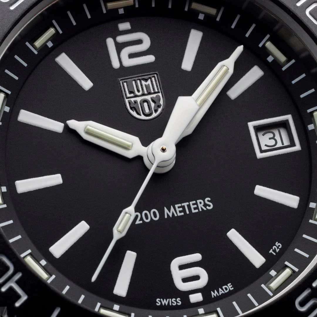 Мужские швейцарские наручные часы Luminox Pacific Diver XS.3122M — это образец совершенства, где качество и стиль гармонично сочетаются с высокими технологиями. Оборудованные кварцевым механизмом с высокой точностью, эти часы станут вашим надежным спутником в любых обстоятельствах. Швейцарские часы оснащены кварцевым механизмом с калибром Ronda 515, гарантируя точность и долговечность работы. Великолепное сапфировое стеклоСапфировое стеклоПрочный и надёжный материал из кристалла сапфира синтетического происхождения, характеризующийся особой твёрдостью и устойчивостью к царапинам и повреждениям. с антибликовым покрытиемАнтибликовое покрытиеСлой оксида металла в 0,13-0,3 микрон, благодаря которому стекло часов не бликует и не отражает свет. Антибликовое покрытие уменьшает отражение света в 10 раз, обеспечивая отличную читаемость показателей циферблата. защищает циферблат от царапин и повреждений, что обеспечивает долговечность и сохранение эстетической привлекательности даже при интенсивном использовании. Корпус часов, выполненный из прочной стали, придает им уверенный и современный вид, обрамляя ваш запястье с изяществом. Стрелки с LLTLLTLLT — это автономный механизм подсветки, основанный на использовании микроскопических газонаполненных элементов. Специальные герметичные капсулы из боросиликатного стекла, интегрированные в циферблат, генерируют свечение без необходимости подключения к внешним источникам энергии. Для их работы не требуется ни дополнительный свет, ни механическое воздействие (например, нажатие кнопки). Свечение возникает благодаря химическому процессу: реакция между тритием, заключенным в капсулах, и люминофорным покрытием создает стабильное автономное освещение. Технология обеспечивает энергетическую независимость и долговечность подсветки.-подсветкой гарантируют отличную читабельность в условиях низкой освещенности, позволяя вам без труда ориентироваться во времени даже в темноте. Удобное окошко даты, расположенное в положении 3 часа, добавляет практичность к этой впечатляющей модели. С классом водозащиты в 200 метров, эти часы идеально подходят для любителей водных видов спорта: вам не стоит переживать, даже если вы решите плавать, нырять или заниматься другими активными водными развлечениями. Элегантный вращающийся безельБезельВнешний ободок, закрепляющий стекло. В спортивных часах так называется поворотное кольцо с делениями на циферблате, выполняет роль таймера – замеряет отрезки времени на шкале. Неподвижный безель – элемент декора. Однонаправленно вращающийся безель на дайверских часах позволяет фиксировать моменты погружения и выныривания на поверхность., выполненный из карбонаКарбонОт «carbon», «carbone» - углерод, углепластик - полимерный композиционный материал из переплетённых под определенным углом между собой нитей углеродного волокна, применяется для изготовления лёгких, но прочных деталей. В часах часто используют для украшения циферблатов и ремешков. Так же карбон используется в изготовлении корпусов. Такие корпуса обладают антикоррозионным свойством, не поддаются электромагнитному излучению, обладают повышенной прочностью и противоударностью., не только усиливает защитные качества часов, но и создает стильный контраст, подчеркивающий их уникальность. Стальной браслет на