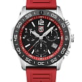 Швейцарские наручные часы Luminox Pacific Diver Chronograph XS.3155.SET – это идеальный симбиоз стиля и высокой функциональности. Оснащенные высокоточным кварцевым механизмом, они гарантируют безупречное времяизмерение и надежность в любом случае. Часы-хронографХронографФункция позволяет измерять отрезки времени с особой точностью: часы, минуты, секунды. Верным признаком хронографа является наличие на циферблате 3 дополнительных окошек-счётчиков. обладают функцией секундомераСекундомерСекундоме́р — прибор, способный измерять интервалы времени с точностью до долей секунды., что делает их практичными в использовании. Циферблат этих часов защищен сапфировым стекломСапфировое стеклоПрочный и надёжный материал из кристалла сапфира синтетического происхождения, характеризующийся особой твёрдостью и устойчивостью к царапинам и повреждениям. с антибликовым покрытиемАнтибликовое покрытиеСлой оксида металла в 0,13-0,3 микрон, благодаря которому стекло часов не бликует и не отражает свет. Антибликовое покрытие уменьшает отражение света в 10 раз, обеспечивая отличную читаемость показателей циферблата., которое славится своей прочностью и устойчивостью к царапинам, обеспечивая кристально чистый обзор. Корпус часов выполнен из качественной стали, что свидетельствует о долговечности и прочности изделия. Стрелки с LLTLLTLLT — это автономный механизм подсветки, основанный на использовании микроскопических газонаполненных элементов. Специальные герметичные капсулы из боросиликатного стекла, интегрированные в циферблат, генерируют свечение без необходимости подключения к внешним источникам энергии. Для их работы не требуется ни дополнительный свет, ни механическое воздействие (например, нажатие кнопки). Свечение возникает благодаря химическому процессу: реакция между тритием, заключенным в капсулах, и люминофорным покрытием создает стабильное автономное освещение. Технология обеспечивает энергетическую независимость и долговечность подсветки.-подсветкой, обеспечивают отличную видимость даже в условиях недостаточной освещенности, что делает их удобными для использования в любых условиях. Дополнительно часы располагают окошком даты в положении 4 часа, позволяющим быстро и удобно отслеживать текущую дату. Их внушительный класс водозащиты в 200 метров делает их идеальными для любителей водных видов спорта, таких как плавание и ныряние, не беспокоясь о повреждении механизма. Каучуковый красный ремешок, надёжно фиксирующий часы на запястье с помощью раскладной застёжкиРаскладная застёжкаТакой тип застёжки используется только на браслетах из металла. Она никогда не раскрывается полностью, происходит разделение на 2 и более частей. Раскладывающая застёжка снизит вероятность потери часов к минимуму., обеспечивает комфортное ношение в течение всего дня. Стильный вращающийся безельБезельВнешний ободок, закрепляющий стекло. В спортивных часах так называется поворотное кольцо с делениями на циферблате, выполняет роль таймера – замеряет отрезки времени на шкале. Неподвижный безель – элемент декора. Однонаправленно вращающийся безель на дайверских часах позволяет фиксировать моменты погружения и выныривания на поверхность., изготовленный из карбонаКарбонОт «carbon», «carbone» - углерод, углепластик - полимерный композиционный материал из