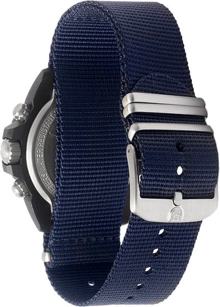 Часы Luminox XS.3583.ND представляют собой надежные и функциональные швейцарские часы, идеально подходящие для активных мужчин, стремящихся к новым достижениям. Они оснащены кварцевым механизмом и выполнены в корпусе из пластика, усиленного прессованным карбоном, что делает их легкими и прочными. Синий циферблат часов защищен минеральным стекломМинеральное стеклоМинеральное стекло представляет собой искусственно выращенный минерал кварца. Такое стекло отличается особой устойчивостью к повреждениям и царапинам. Уступает по некоторым качествам сапфировому стеклу. повышенной прочности, способным выдерживать значительные нагрузки и сохраняя его в первозданном виде. Часы-хронографХронографФункция позволяет измерять отрезки времени с особой точностью: часы, минуты, секунды. Верным признаком хронографа является наличие на циферблате 3 дополнительных окошек-счётчиков. обладают функцией секундомераСекундомерСекундоме́р — прибор, способный измерять интервалы времени с точностью до долей секунды. и поддерживают 12- и 24-часовой формат времени, что делает их практичными в использовании. БезельБезельВнешний ободок, закрепляющий стекло. В спортивных часах так называется поворотное кольцо с делениями на циферблате, выполняет роль таймера – замеряет отрезки времени на шкале. Неподвижный безель – элемент декора. Однонаправленно вращающийся безель на дайверских часах позволяет фиксировать моменты погружения и выныривания на поверхность., который вращается в одном направлении, снабжен светящейся меткой на 12 часов, обеспечивая удобство и точность в любых условиях. Технология LLTLLTLLT — это автономный механизм подсветки, основанный на использовании микроскопических газонаполненных элементов. Специальные герметичные капсулы из боросиликатного стекла, интегрированные в циферблат, генерируют свечение без необходимости подключения к внешним источникам энергии. Для их работы не требуется ни дополнительный свет, ни механическое воздействие (например, нажатие кнопки). Свечение возникает благодаря химическому процессу: реакция между тритием, заключенным в капсулах, и люминофорным покрытием создает стабильное автономное освещение. Технология обеспечивает энергетическую независимость и долговечность подсветки.-подсветки, использующая тритий, гарантирует превосходную видимость в полной темноте и будет служить надежным помощником в течение 25 лет. С водозащитой до 200 метров эти часы подходят для водных видов спорта и активных приключений. Завинчивающаяся задняя крышка и защищенная заводная головка обеспечивают дополнительную герметичность и долговечность часов. Нейлоновый синий ремешок с классической стальной застежкой обеспечивает комфортное и надежное ношение, а календарь с указателем числа добавляет практичности.