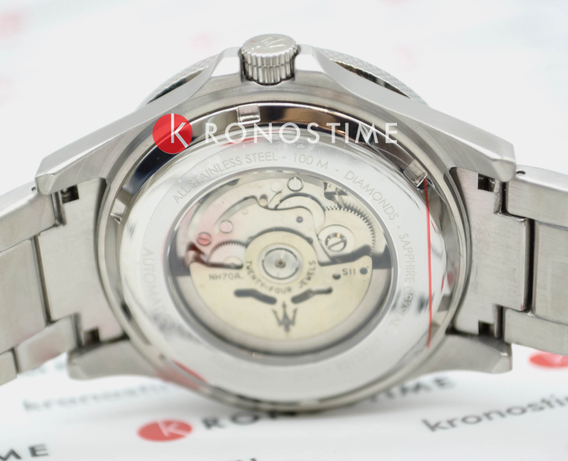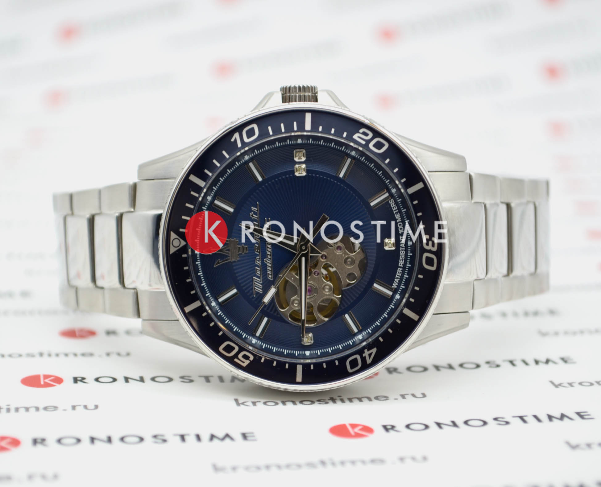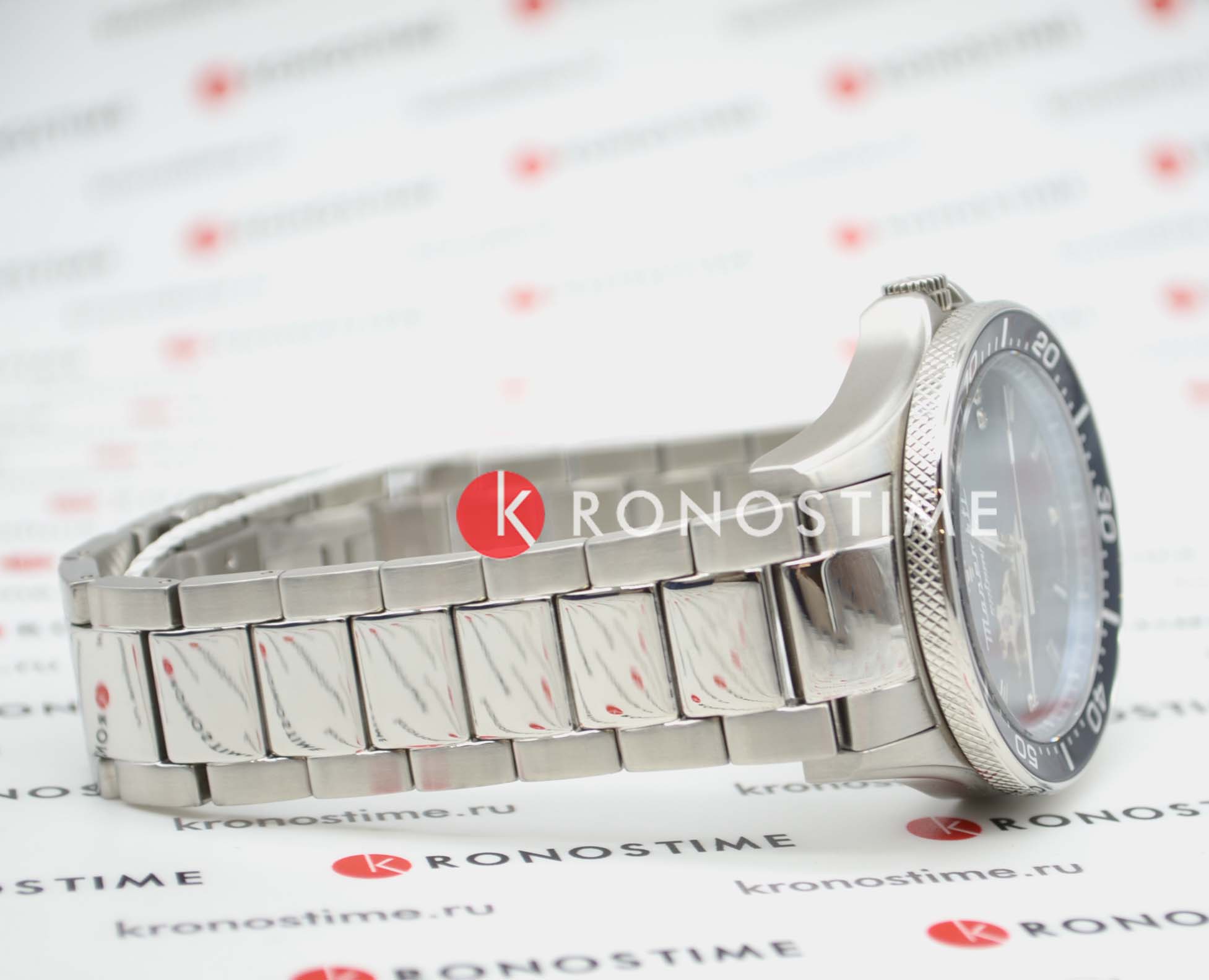 Механический механизм (автоматический калибр) с высокой точностью. Сапфировое стеклоСапфировое стеклоПрочный и надёжный материал из кристалла сапфира синтетического происхождения, характеризующийся особой твёрдостью и устойчивостью к царапинам и повреждениям. устойчивое к появлению царапин, обладающее высокой прозрачностью. Циферблат украшен бриллиантами. Стрелки с люминесцентным покрытиемЛюминесцентное покрытиеПозволяет считывать показания времени в темноте. Производители наносят на стрелки, часовые индексы, безель или поверхность циферблата светонакопительный состав, дающий холодное свечение.. БезельБезельВнешний ободок, закрепляющий стекло. В спортивных часах так называется поворотное кольцо с делениями на циферблате, выполняет роль таймера – замеряет отрезки времени на шкале. Неподвижный безель – элемент декора. Однонаправленно вращающийся безель на дайверских часах позволяет фиксировать моменты погружения и выныривания на поверхность. поворотный. Класс водозащиты: 100 метров, позволит плавать, нырять и заниматься другими водными видами спорта. Корпус часов изготовлен из нержавеющей стали. Браслет с застёжкой «бабочка» с кнопкамиЗастёжка "бабочка"Такой вид застёжки дополняется предохранителями, помогающими избежать случайного раскрытия браслета. Обладают изящным исполнением. . Дополнительный ремешок в комплекте.