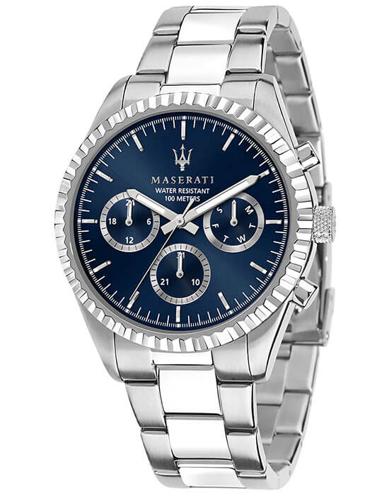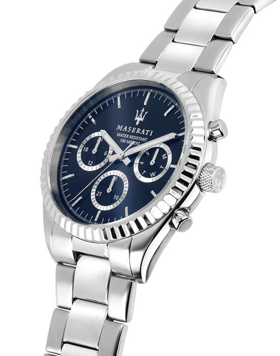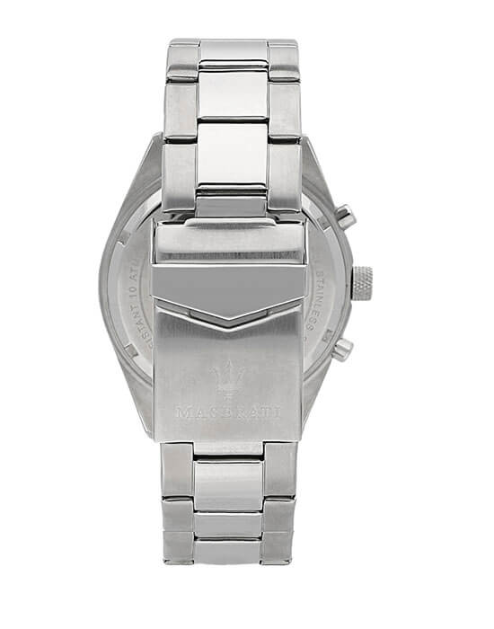 Мужские часы с хронографом Maserati COMPETIZIONE R8853100022, кварцевый механизм с высокой точностью. Класс водозащиты: 100 метров, позволит плавать, нырять и заниматься другими водными видами спорта. Корпус часов изготовлен из стали, серебристого цвета.