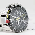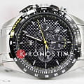 Черный циферблат оснащен тремя дополнительными счетчиками, выполняющими функции хронографаХронографФункция позволяет измерять отрезки времени с особой точностью: часы, минуты, секунды. Верным признаком хронографа является наличие на циферблате 3 дополнительных окошек-счётчиков., что позволяет точно измерять промежутки времени. Стрелки и часовые метки покрыты люминесцентным составомЛюминесцентное покрытиеПозволяет считывать показания времени в темноте. Производители наносят на стрелки, часовые индексы, безель или поверхность циферблата светонакопительный состав, дающий холодное свечение., обеспечивая отличную читаемость в условиях низкой освещенности.
