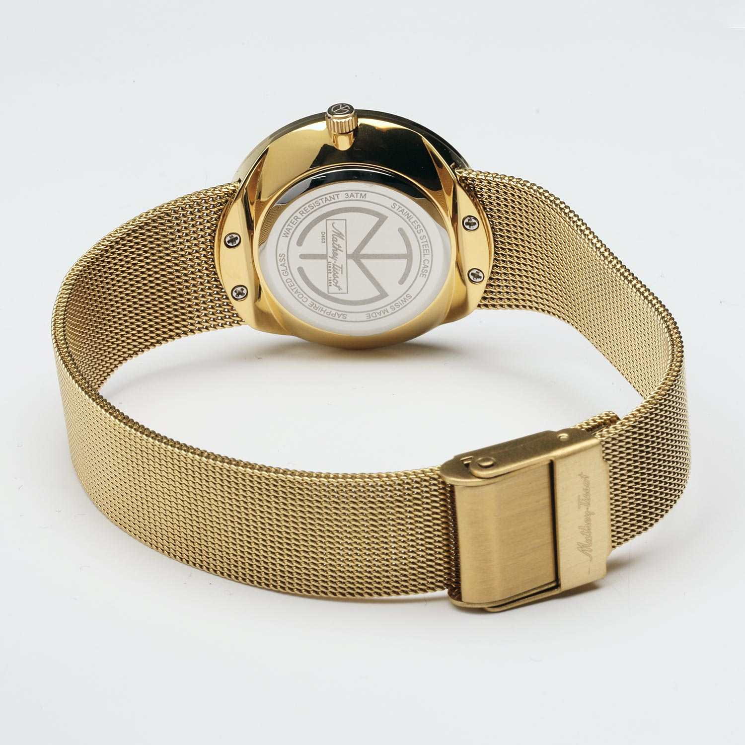 Женские кварцевые часы Mathey-Tissot Milly D403PYN — это стильное сочетание элегантности и современного дизайна. Изящный корпус выполнен из нержавеющей стали с PVD-покрытиемPVDУльтратонкое покрытие наносится в технике вакуумного напыления, сочетает в себе нитрид титана особой прочности со слоем золота или оксида хрома. Несёт в себе декоративную или защитную функцию. золотистого цвета, диаметром 30 мм, что придаст образу элегантности и надежности. Изысканный перламутровый циферблат с метками в виде штрихов придает модели особый блеск. Циферблат защищен минеральным стекломМинеральное стеклоМинеральное стекло представляет собой искусственно выращенный минерал кварца. Такое стекло отличается особой устойчивостью к повреждениям и царапинам. Уступает по некоторым качествам сапфировому стеклу. с сапфировым покрытием, обеспечивает устойчивость к царапинам. Часы оснащены надежным кварцевым механизмом. Стальной браслет с PVD-покрытиемPVDУльтратонкое покрытие наносится в технике вакуумного напыления, сочетает в себе нитрид титана особой прочности со слоем золота или оксида хрома. Несёт в себе декоративную или защитную функцию. миланского плетения на раскладном замкеРаскладная застёжкаТакой тип застёжки используется только на браслетах из металла. Она никогда не раскрывается полностью, происходит разделение на 2 и более частей. Раскладывающая застёжка снизит вероятность потери часов к минимуму., гарантирует комфортное и безопасное ношение. Класс водозащиты: 30 метров позволит защитить корпус от случайных брызг или капель дождя. Mathey-Tissot — отличный выбор для тех, кто ценит утонченность и качество.