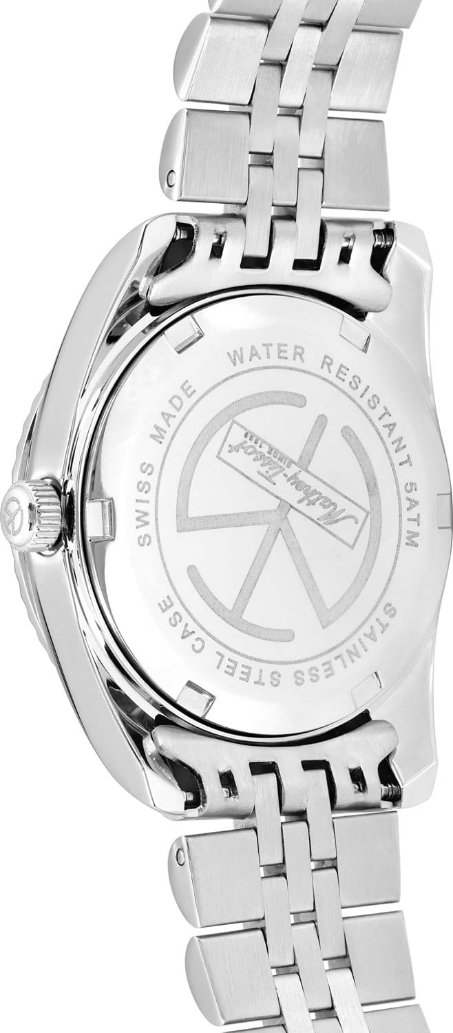 Женские кварцевые часы Mathey-Tissot Mathy D810AV — это стильное сочетание элегантности и современного дизайна. Изящный корпус выполнен из нержавеющей стали, диаметром 32 мм, что придаст образу женственности и романтизма. Изысканный циферблат с метками в виде точек украшены цирконами, что придает модели особый блеск. Циферблат защищен минеральным стекломМинеральное стеклоМинеральное стекло представляет собой искусственно выращенный минерал кварца. Такое стекло отличается особой устойчивостью к повреждениям и царапинам. Уступает по некоторым качествам сапфировому стеклу., обеспечивающий устойчивость к царапинам. Стрелки с люминесцентным покрытиемЛюминесцентное покрытиеПозволяет считывать показания времени в темноте. Производители наносят на стрелки, часовые индексы, безель или поверхность циферблата светонакопительный состав, дающий холодное свечение.. Окошко даты находится в положении 3 часа. Часы оснащены надежным кварцевым механизмом. Стальной браслет на раскладной застёжкеРаскладная застёжкаТакой тип застёжки используется только на браслетах из металла. Она никогда не раскрывается полностью, происходит разделение на 2 и более частей. Раскладывающая застёжка снизит вероятность потери часов к минимуму., гарантирует комфортное и безопасное ношение. Класс водозащиты: 50 метров позволит защитить корпус от случайных брызг или капель дождя. Mathey-Tissot — отличный выбор для тех, кто ценит утонченность и качество.