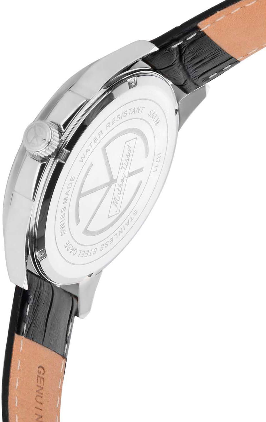 Мужские кварцевые часы Mathey-Tissot Mondo H711AN — это стильное сочетание элегантности и современного дизайна. Изящный корпус выполнен из нержавеющей стали, диаметром 42 мм, что придаст образу элегантности и надежности. Изысканный циферблат с метками в виде штрихов придает модели особый блеск. Циферблат защищен минеральным стекломМинеральное стеклоМинеральное стекло представляет собой искусственно выращенный минерал кварца. Такое стекло отличается особой устойчивостью к повреждениям и царапинам. Уступает по некоторым качествам сапфировому стеклу., обеспечивает устойчивость к царапинам. Стрелки с люминесцентным покрытиемЛюминесцентное покрытиеПозволяет считывать показания времени в темноте. Производители наносят на стрелки, часовые индексы, безель или поверхность циферблата светонакопительный состав, дающий холодное свечение.. Окошко даты находится в положении 4 часа. Рифленая заводная головка. Часы оснащены надежным кварцевым механизмом. Кожаный ремешок на стандартной застёжке гарантирует комфортное и безопасное ношение. Класс водозащиты: 50 метров позволит защитить корпус от случайных брызг или капель дождя. Mathey-Tissot — отличный выбор для тех, кто ценит утонченность и качество.