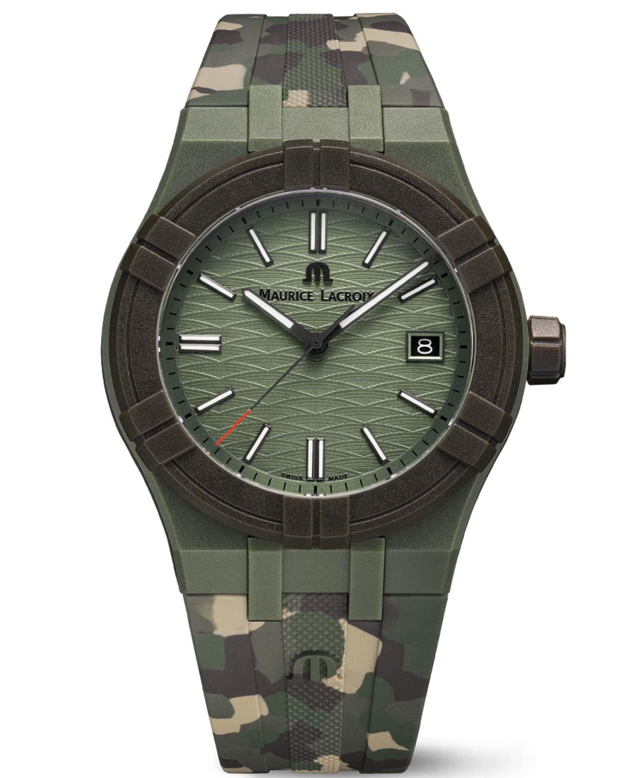 Вдохновленный культовым Calypso 90-х годов, AIKON сам по себе стал иконой. Язык дизайна сочетает в себе смелый городской стиль и мастерскую игру на контрастах. Как и все наши часы, AIKON сочетает в себе швейцарское мастерство и высокую ценность. Швейцарские часы Maurice Lacroix AIKON #TIDE CAMO AI2008-D33DZ-000-0, кварцевый механизм с высокой точностью. Сапфировое стеклоСапфировое стеклоПрочный и надёжный материал из кристалла сапфира синтетического происхождения, характеризующийся особой твёрдостью и устойчивостью к царапинам и повреждениям. устойчивое к появлению царапин, обладающее высокой прозрачностью. Класс водозащиты: 100 метров, позволит плавать, нырять и заниматься другими водными видами спорта. Корпус часов изготовлен из пластика. Каучуковый ремень на стандартной застёжке. Окошко даты находится в положении 3 часов.Стрелки и метки с люминесцентным покрытиемЛюминесцентное покрытиеПозволяет считывать показания времени в темноте. Производители наносят на стрелки, часовые индексы, безель или поверхность циферблата светонакопительный состав, дающий холодное свечение..