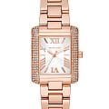 Женские американские наручные часы с минеральным стекломМинеральное стеклоМинеральное стекло представляет собой искусственно выращенный минерал кварца. Такое стекло отличается особой устойчивостью к повреждениям и царапинам. Уступает по некоторым качествам сапфировому стеклу. Michael Kors Emery MK4641, кварцевый механизм с высокой точностью. Минеральное стеклоМинеральное стеклоМинеральное стекло представляет собой искусственно выращенный минерал кварца. Такое стекло отличается особой устойчивостью к повреждениям и царапинам. Уступает по некоторым качествам сапфировому стеклу. устойчивое к появлению царапин, обладающее высокой прозрачностью. Корпус и браслет часов изготовлены из нержавеющей стали с PVD-покрытиемPVDУльтратонкое покрытие наносится в технике вакуумного напыления, сочетает в себе нитрид титана особой прочности со слоем золота или оксида хрома. Несёт в себе декоративную или защитную функцию.. БезельБезельВнешний ободок, закрепляющий стекло. В спортивных часах так называется поворотное кольцо с делениями на циферблате, выполняет роль таймера – замеряет отрезки времени на шкале. Неподвижный безель – элемент декора. Однонаправленно вращающийся безель на дайверских часах позволяет фиксировать моменты погружения и выныривания на поверхность. из нержавеющей стали украшен кристаллами. Класс водозащиты: 50 метров, позволит защитить корпус от случайных брызг или капель дождя. Стальной браслет на раскладной застёжкеРаскладная застёжкаТакой тип застёжки используется только на браслетах из металла. Она никогда не раскрывается полностью, происходит разделение на 2 и более частей. Раскладывающая застёжка снизит вероятность потери часов к минимуму..