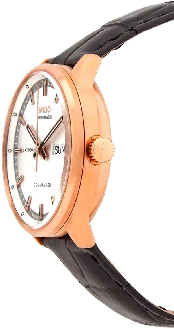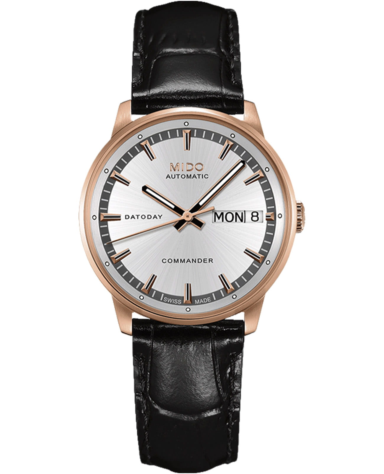 Мужские швейцарские механические часы с системой автоматического подзавода Mido Commander M016.230.36.031.00, механический механизм (автоматический калибр) с высокой точностью. Сапфировое стеклоСапфировое стеклоПрочный и надёжный материал из кристалла сапфира синтетического происхождения, характеризующийся особой твёрдостью и устойчивостью к царапинам и повреждениям. устойчивое к появлению царапин, обладающее высокой прозрачностью. Класс водозащиты: 50 метров, позволит защитить корпус от случайных брызг или капель дождя. Корпус часов изготовлен из стали с PVD-покрытиемPVDУльтратонкое покрытие наносится в технике вакуумного напыления, сочетает в себе нитрид титана особой прочности со слоем золота или оксида хрома. Несёт в себе декоративную или защитную функцию.. Кожаный ремешок с раскладной застёжкойРаскладная застёжкаТакой тип застёжки используется только на браслетах из металла. Она никогда не раскрывается полностью, происходит разделение на 2 и более частей. Раскладывающая застёжка снизит вероятность потери часов к минимуму.. Окошки дня недели и даты находятся в положении 3 часа.